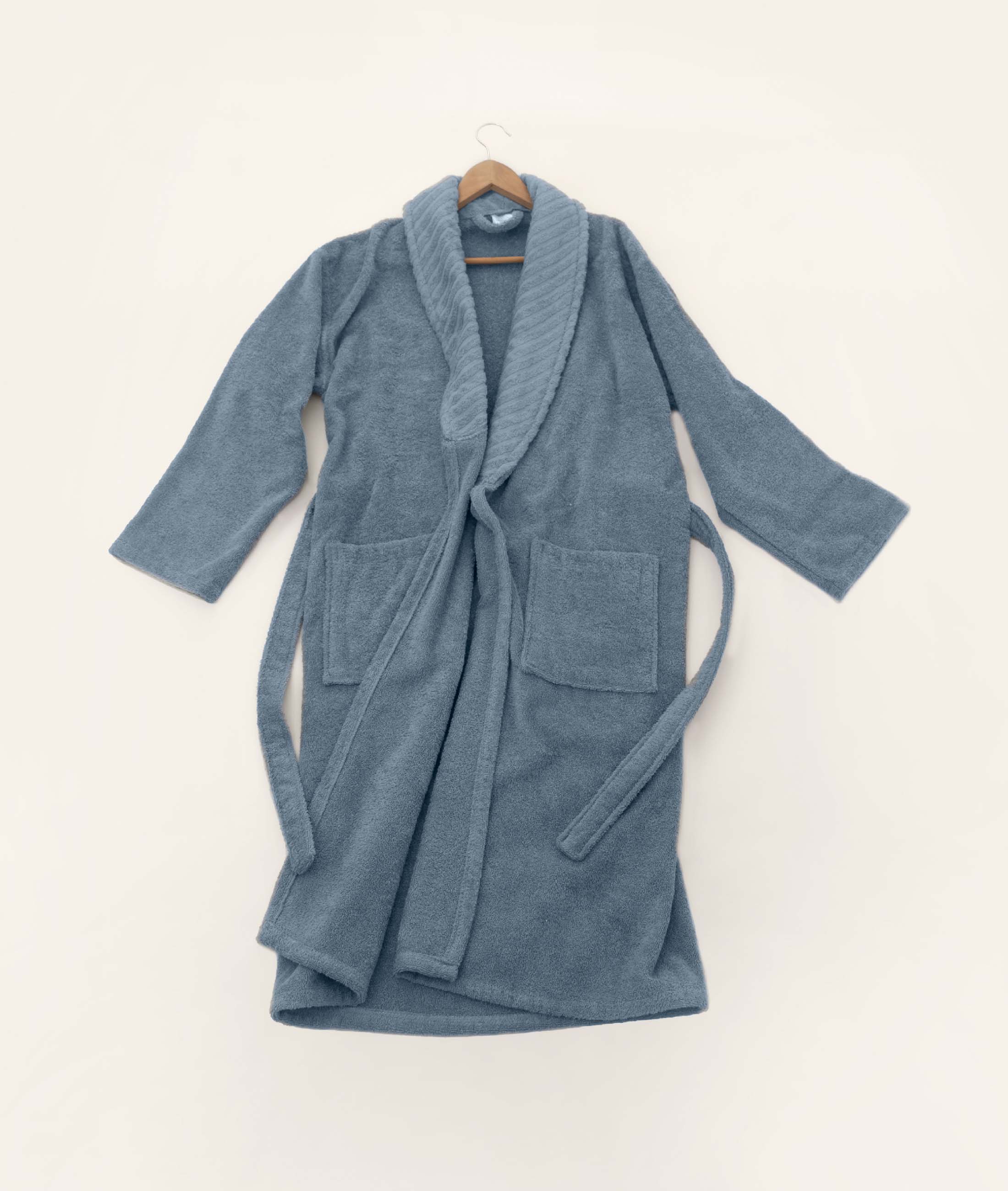 Koza Home Likya 100% Cotton Single Blue Dowry Bathrobe 1041A L-XL