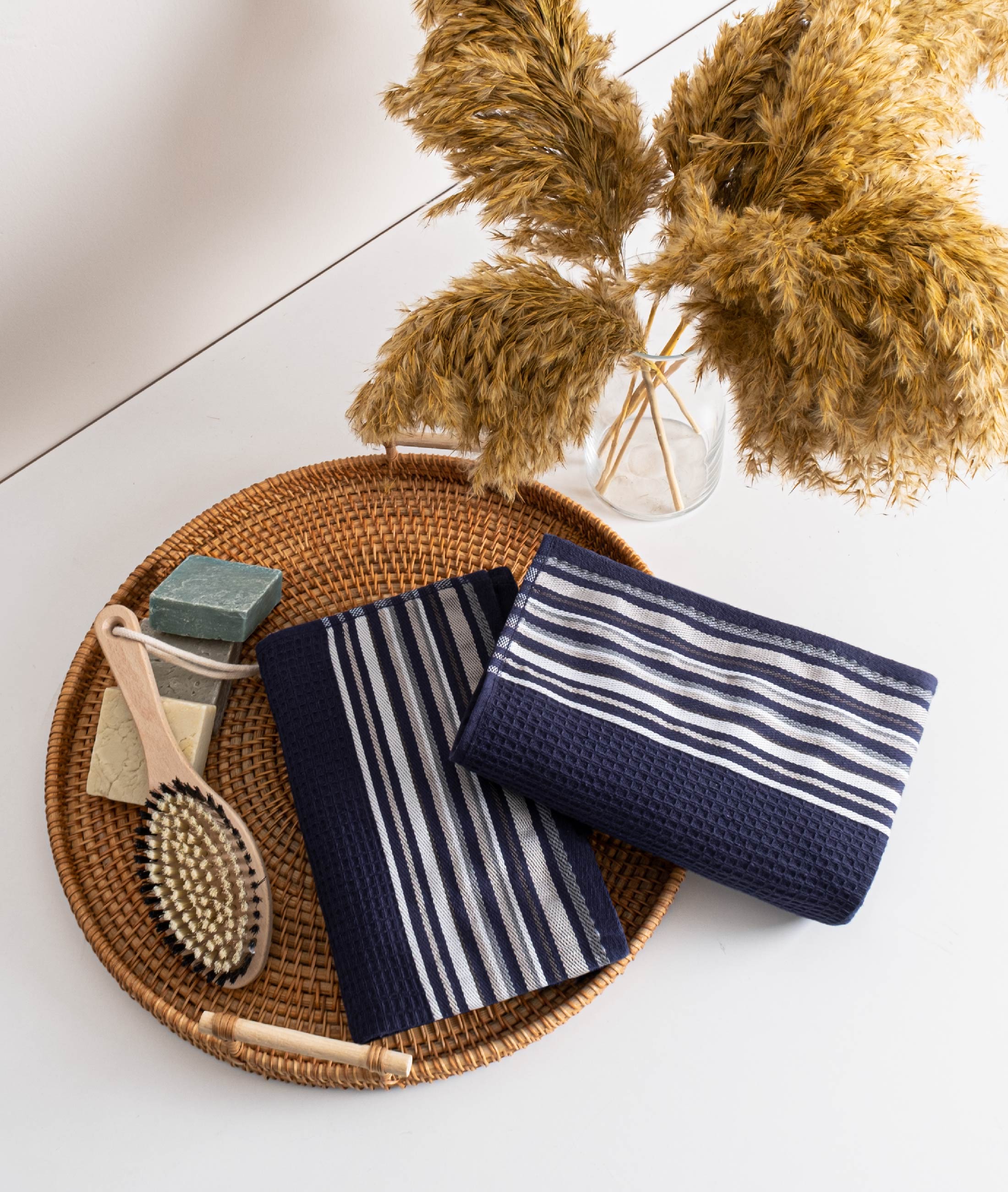 Limira Pack of 2 Navy Blue Face Towel 50x90 2246 It stands out with its gofre textured cotton fabric and linear tone transitions. The color palette in pastel tones adapts to different decorations. It is ideal for drying hands and face with its 50x90 dimensions. It offers a soft and comfortable use, relaxes with the comfort of natural cotton. Provides a stylish look and functional use in your bathrooms. Provides a good drying experience and dries quickly thanks to its absorbent structure. Be sure to wash in the washing machine at 30 °. Do not use bleach or detergent with bleaching properties. Avoid washing with harsh chemicals such as bleach or alcohol to preserve the quality of the fabric. Drying by spreading is recommended. During the drying process, avoid exposure to direct sunlight to prevent possible fabric damage. Note: Actual colors may differ depending on lighting and monitor settings.