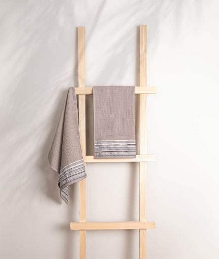 It stands out with its gofre textured cotton fabric and linear tone transitions. The color palette in pastel tones adapts to different decorations. It is ideal for drying hands and faces with its 50x90 dimensions. It offers a soft and comfortable use, and relaxes with the comfort of natural cotton. It provides a stylish look and functional use in your bathrooms. It provides a good drying experience and dries quickly thanks to its absorbent structure. Be sure to wash in the washing machine at 30°. Do not use bleach or detergent with bleach properties. Avoid washing with harsh chemicals such as bleach or alcohol to preserve the quality of the fabric. Drying by spreading is recommended. During the drying process, avoid exposure to direct sunlight to prevent possible fabric damage. Note: Actual colors may vary depending on lighting and monitor settings.