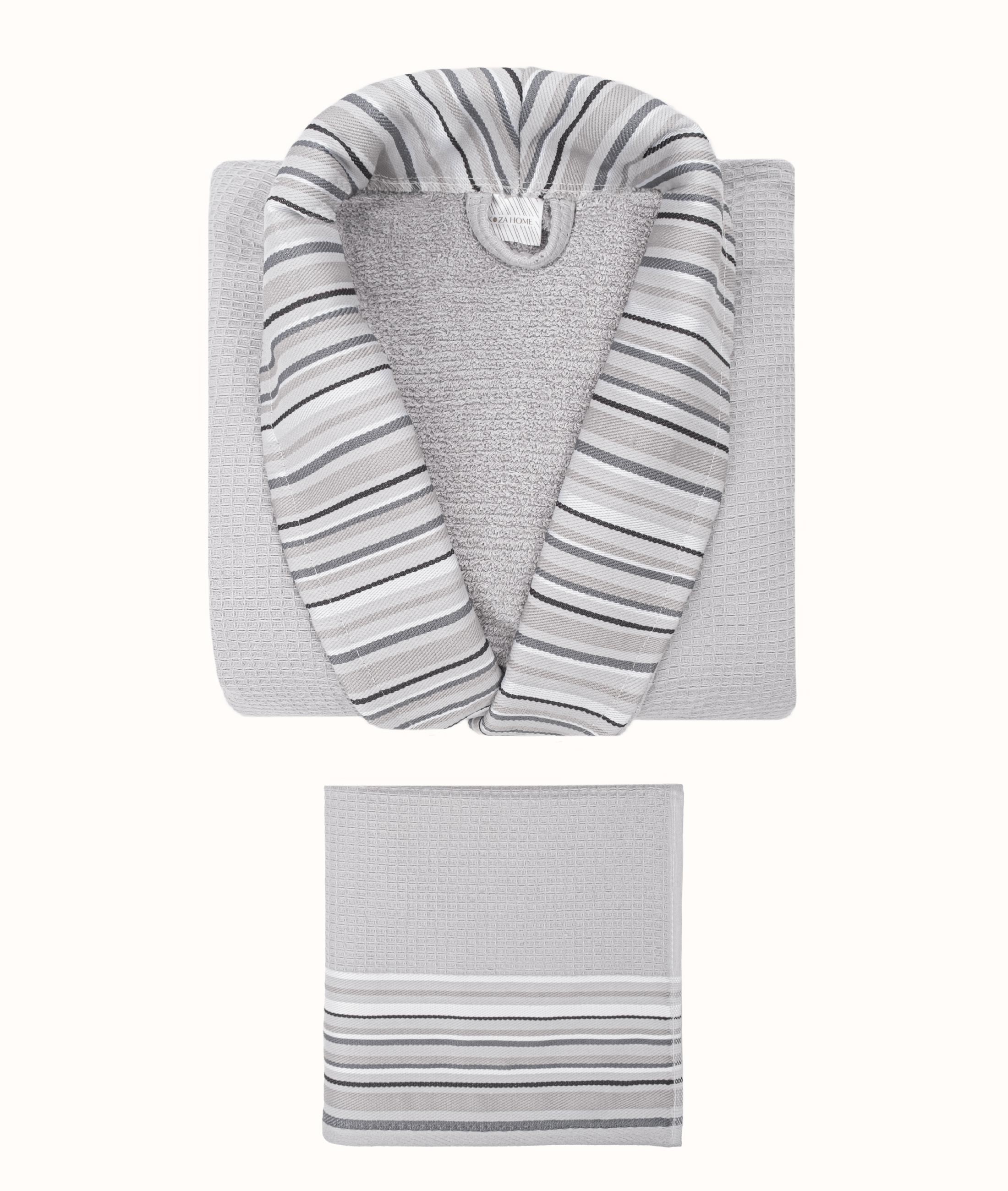 Koza Home Limira 2 Piece Set Gray Cotton 1 Bathrobe SM 1 Dowry Towel 50x90 2232 SM