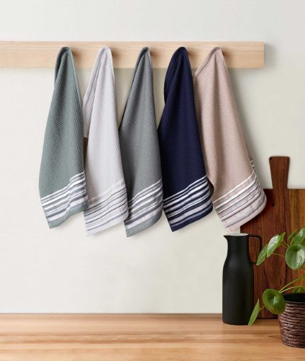 Limira 5-Pack Multicolored Kitchen Towels 30x50 2263 It stands out with its gofre textured cotton fabric and linear tone transitions. The color palette in pastel tones adapts to different decorations. With its 30x50 dimensions, it is ideal for drying hands and dishes in the kitchen. It offers a soft and comfortable use, and relaxes with the comfort of natural cotton. It provides a stylish look and functional use in your bathrooms. Thanks to its absorbent structure, it provides a good drying experience and dries quickly. Be sure to wash in the washing machine at 30 °. Do not use bleach or detergent with bleaching properties. To preserve the quality of the fabric, avoid washing with harsh chemicals such as bleach or alcohol. Drying by spreading is recommended. Note: Actual colors may differ depending on lighting and monitor settings.