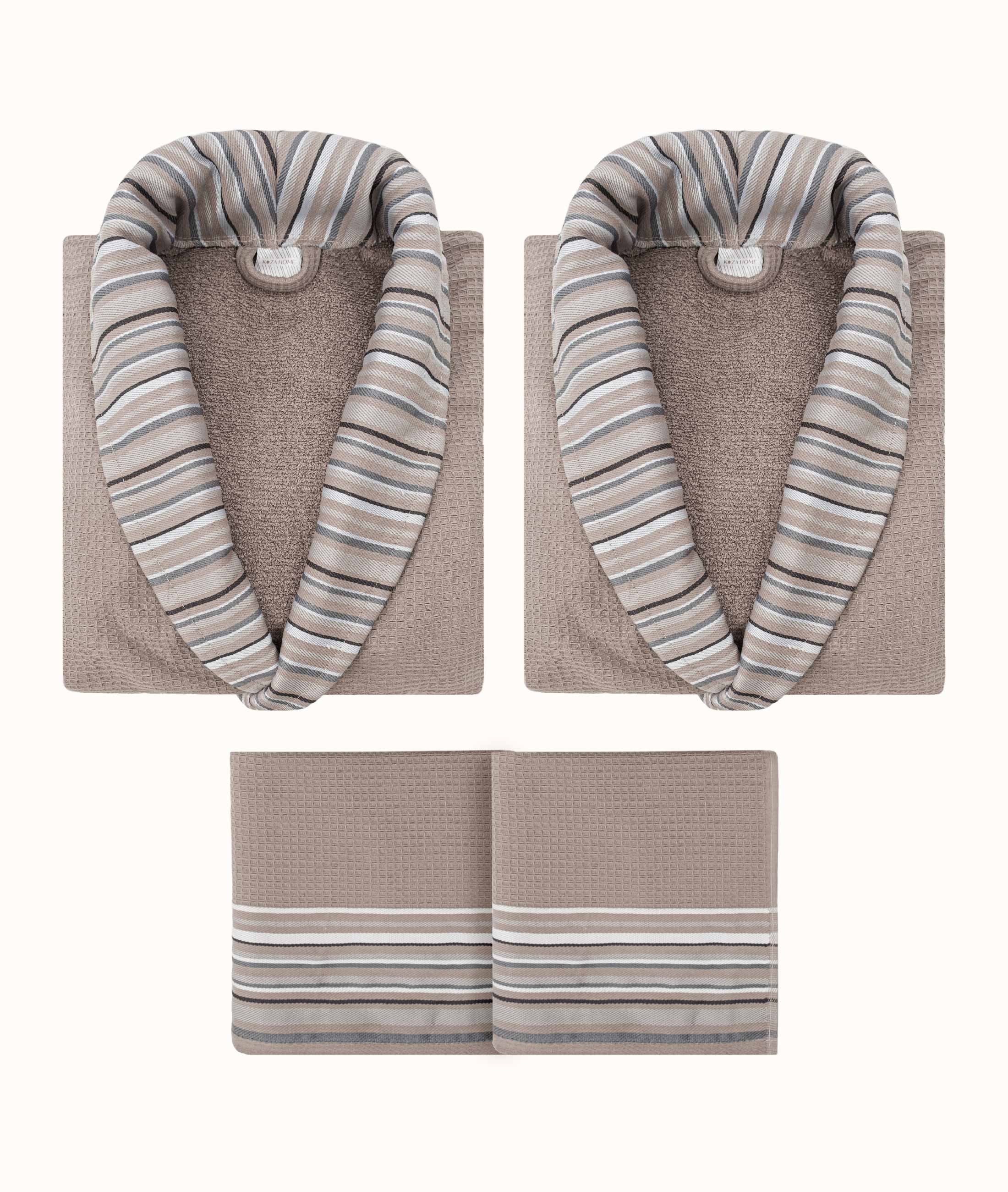 Limira 4-Piece Cotton Set (2 Bathrobes, 2 Towels) will be your best bath companion. Made of honeycomb textured cotton fabric for a luxurious feel. Includes 2 bathrobes and 2 50x90 towels for a comprehensive bath experience. There are pastel-toned and relaxing colors to suit your preference. The set has a minimalist design for a timeless look. It offers a quality that enhances your bathing pleasure. It provides efficient drying thanks to its water-absorbent fabric structure. Designed for quick drying and gets you ready to conquer the day. Its honeycomb texture, meticulous design and water-absorbent fabric promise a unique bathing experience. Say goodbye to moisture and hello to comfort. It is recommended to wash at 30 degrees. Avoid washing with harsh chemicals such as bleach or alcohol to preserve the quality of the fabric. No bleaching. No ironing required. Drying by hanging is recommended. During the drying process, avoid exposure to direct sunlight to prevent possible fabric damage. Note: Actual colors may vary depending on lighting and monitor settings.