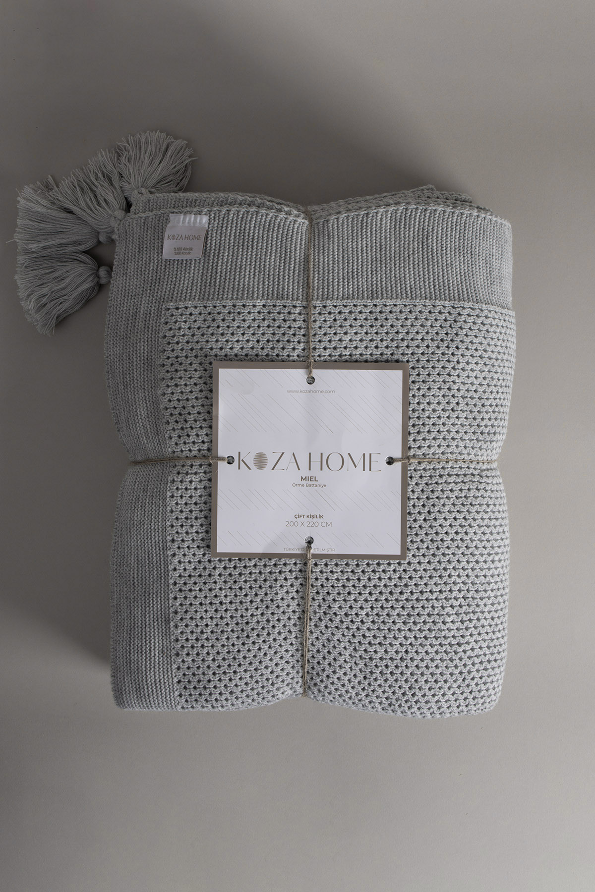 PRODUCT FEATURES Our Koza Home Miel model product is 100% Acrylic and its soft texture warms you up on cold winter days. Thanks to the structure of the product, both sides can be used. This model from our Miel Blanket group has different color options and since its fabric structure is one of the least breathable fabrics, its heat retention ability is higher than other fabrics. It can be used as a shawl on places such as armchairs, armchairs, chairs, pouffe chairs, and you can add modernity and elegance to the environment. The tassel (pompom) detail will provide movement to the blanket and the environment it is in. You can match your duvet cover sets by spreading it on your beds or bases. AREAS OF USAGE It can be used as a shawl or blanket on a double or single armchair, armchairs, pouffe, chair, garden chair, bed or base duvet cover. MAINTENANCE AND CLEANING Your blanket can be washed at 30 degrees machine setting. Do not wash with chemicals such as bleach, alcohol, etc. Do not expose to direct sunlight during the drying process. The above reasons and stains during use exclude your blanket from warranty. TECHNICAL INFORMATION - 100% Acrylic - More durable because it is made with special machine knitting. - Provides more heat because it has less breathability. - Can be used on both sides. - Special color segment - Blanket model with pompon tassel detail SIZE 130 x 170, 160 x 220, 200 x 220 COLORS Gray, Mink, Blue, Navy Blue, Cream