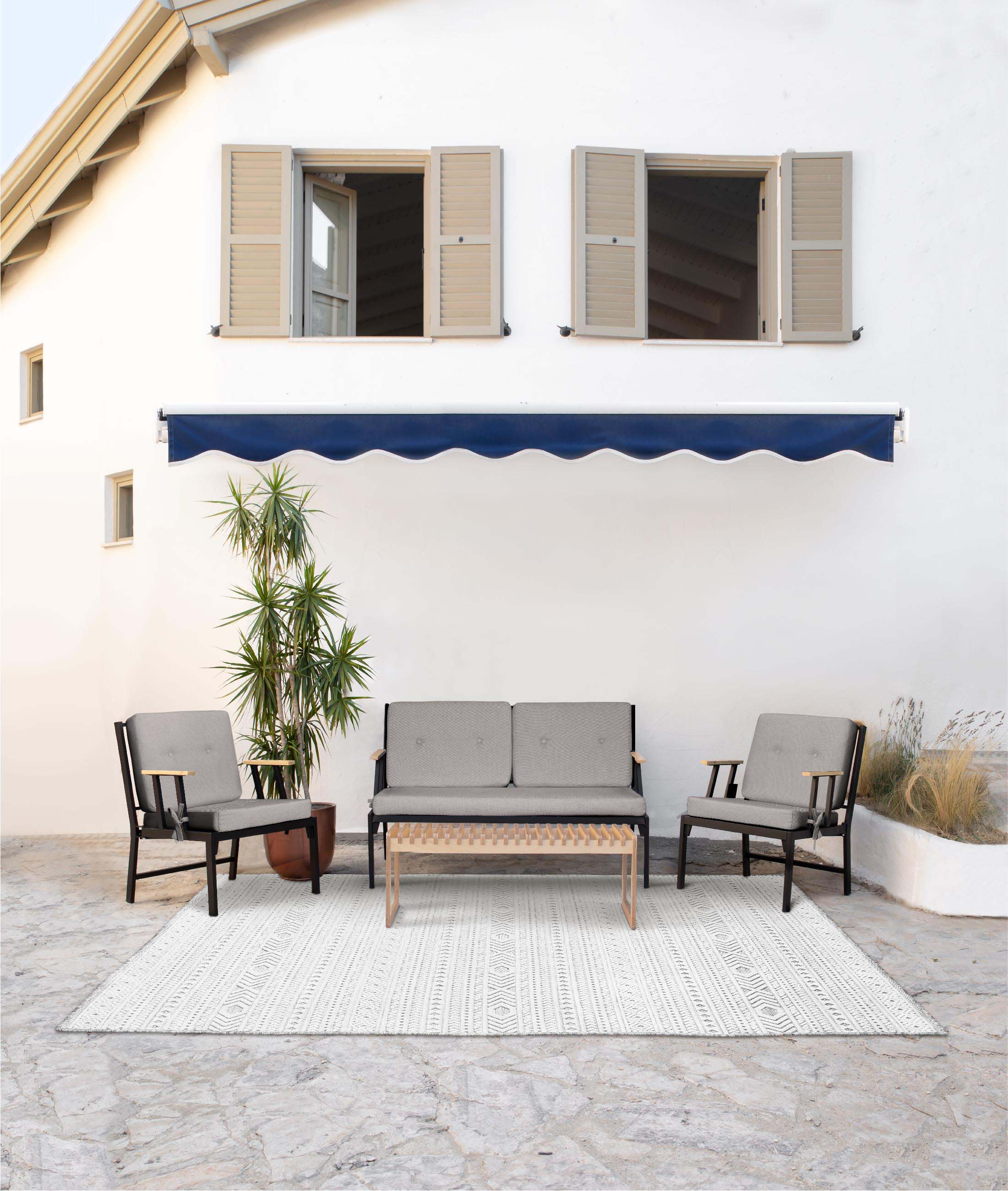 Mist armchairs, which are produced using polyester paint, are suitable for outdoor areas as they are resistant to rust and fading. Our demounted armchairs, which do not require any screw-like products during installation, have a completely plug-in system. Color Options: Beige, Gray, Brown, Blue Single Armchair Dimensions (Width-Length-Height): 74cm x 62cm x 84cm Double Armchair Dimensions (Width-Length-Height): 74cm x 137cm x 84cm Armchair Height from the Ground: 36cm