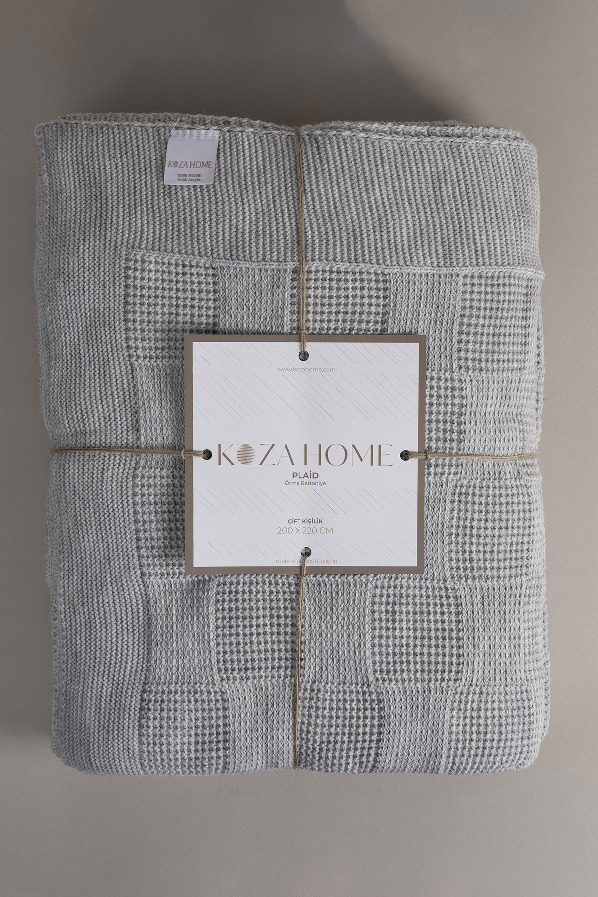 PRODUCT FEATURES Our Koza Home Plaid model product is 50% acrylic and 50% cotton and its soft texture warms you up on cold winter days. Thanks to the structure of the product, both sides can be used. This model from our Plaid Blanket group has different color options and since its fabric structure is one of the least breathable fabrics, its heat retention ability is higher than other fabrics. It can be used as a shawl on places such as armchairs, chairs, pouffes, and you can add modernity and elegance to the environment. You can match your duvet cover sets by spreading it on your beds or bases. AREAS OF USAGE It can be used as a shawl or blanket on double or single armchairs, armchairs, pouffes, chairs, garden chairs, beds or base duvet covers. MAINTENANCE AND CLEANING Your blanket can be washed at 30 degrees machine setting. Do not wash with chemicals such as bleach, alcohol, etc. Do not expose to direct sunlight during the drying process. The above reasons and stains during use exclude your blanket from the warranty. TECHNICAL INFORMATION - 100% Acrylic - More durable because it is made with special machine knitting. - Provides more heat because it has less breathability. - Both Sides Can Be Used. - Special Color Segment SIZE 130 x 170, 160 x 220, 200 x 220 COLORS Gray, Mink, Blue, Navy Blue, Cream