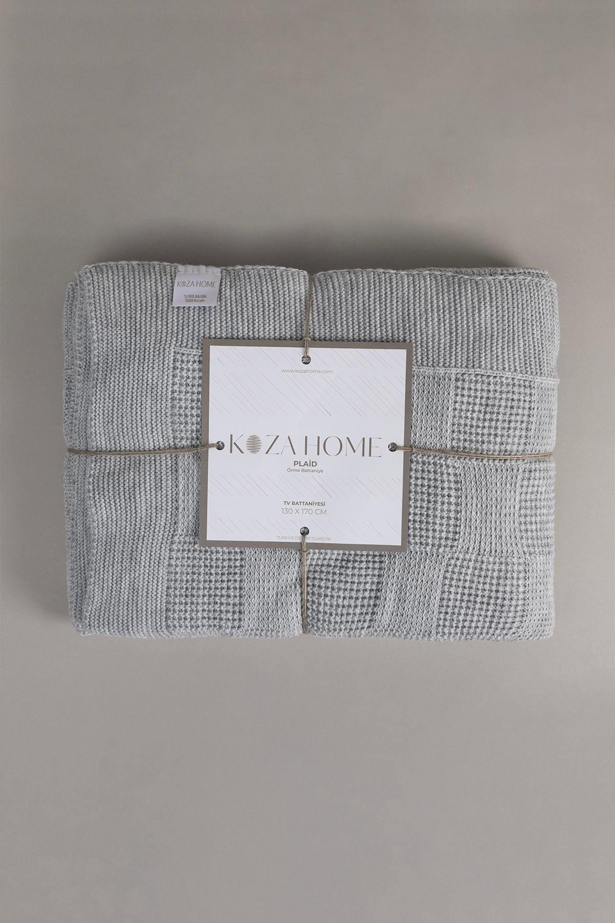 PRODUCT FEATURES Our Koza Home Plaid model product is 50% acrylic and 50% cotton and its soft texture warms you up on cold winter days. Thanks to the structure of the product, both sides can be used. This model from our Plaid Blanket group has different color options and since its fabric structure is one of the least breathable fabrics, its heat retention ability is higher than other fabrics. It can be used as a shawl on places such as armchairs, chairs, pouffes, and you can add modernity and elegance to the environment. You can match your duvet cover sets by spreading it on your beds or bases. AREAS OF USAGE It can be used as a shawl or blanket on double or single armchairs, armchairs, pouffes, chairs, garden chairs, beds or base duvet covers. MAINTENANCE AND CLEANING Your blanket can be washed at 30 degrees machine setting. Do not wash with chemicals such as bleach, alcohol, etc. Do not expose to direct sunlight during the drying process. The above reasons and stains during use exclude your blanket from the warranty. TECHNICAL INFORMATION - 100% Acrylic - More durable because it is made with special machine knitting. - Provides more heat because it has less breathability. - Both Sides Can Be Used. - Special Color Segment SIZE 130 x 170, 160 x 220, 200 x 220 COLORS Gray, Mink, Blue, Navy Blue, Cream