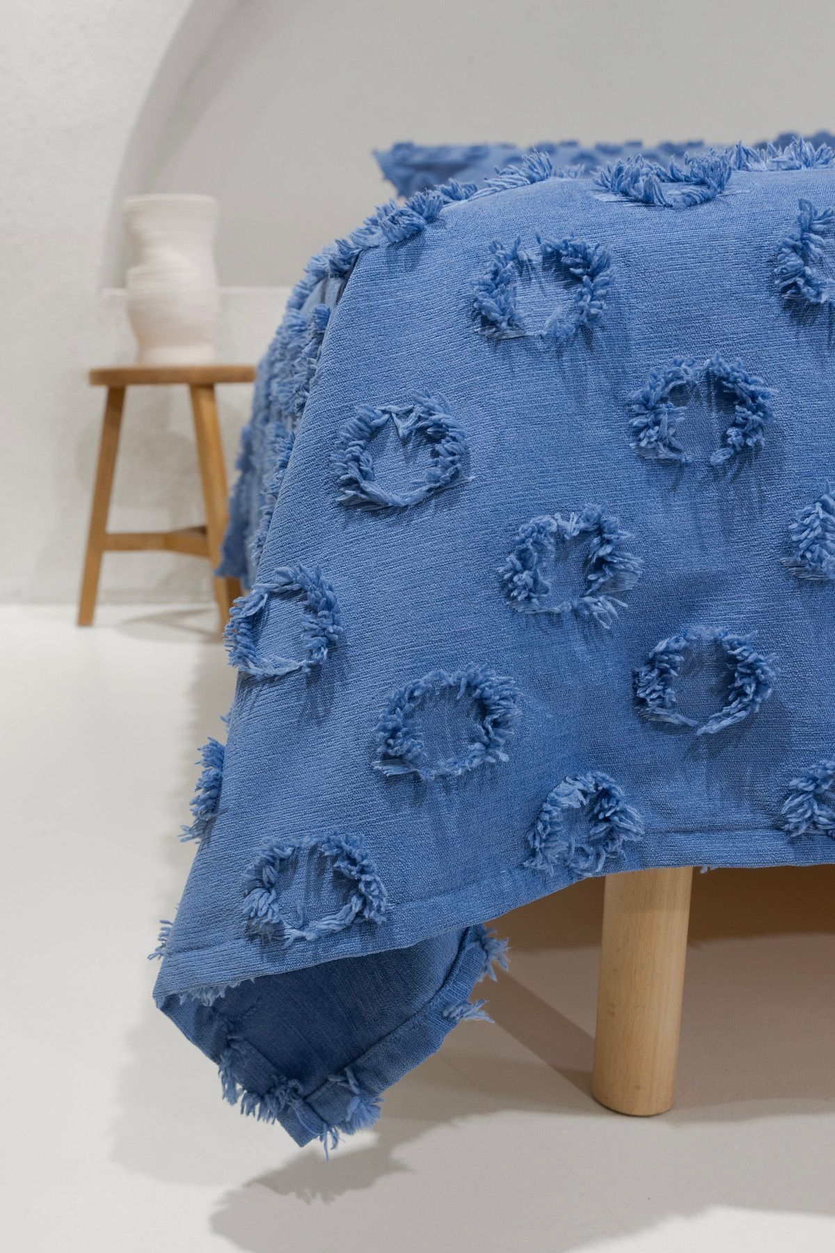 Sitra Navy Blue Double Tasseled Bedspread 230x250 2 Pillows 50x70 5034 This carefully crafted bedspread provides ample coverage with a generous 230x250 cm size. The product set includes two 50x70 cm pillowcases. Its elegant navy blue color adds calmness and elegance to your room. It offers a soft and comfortable feel thanks to its high-quality cotton content. The bedspread combines both comfort and aesthetics, effortlessly transforming your bedroom into a haven of peace. Ideal for those looking for a tidy and stylish bedroom, the bedspread provides a sumptuous and harmonious look. The circular tassel details on it add a unique air to your room, reflecting an original boho style. The Sitra Double Tasseled Bedspread is a perfect way to organize your bedroom and add a stylish touch. Care Recommendation Washing at 30 degrees is recommended. No bleaching. No ironing required. Dry drying is recommended. No dry cleaning. Note: Actual colors may vary depending on lighting and monitor settings.