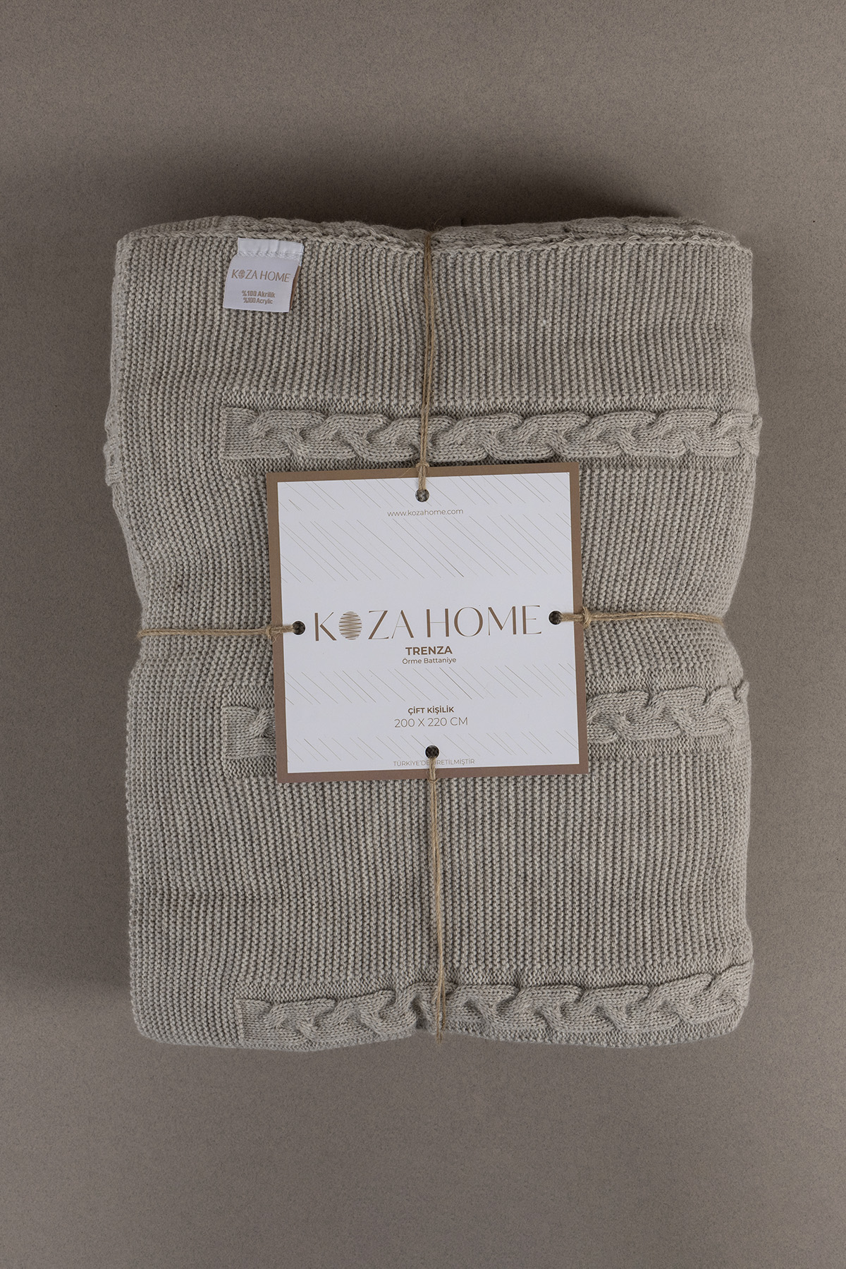 PRODUCT FEATURES Our Koza Home Trenza model product is 100% acrylic and its soft texture warms you up on cold winter days. Thanks to the structure of the product, both sides can be used. This model from our Trenza Blanket group has different color options and since its fabric structure is one of the least breathable fabrics, its heat retention ability is higher than other fabrics. It can be used as a shawl on places such as armchairs, chairs, pouffe armchairs, and you can add modernity and elegance to the environment. You can match your duvet cover sets by spreading it on your beds or bases. AREAS OF USAGE - It can be used as a shawl or blanket on double or single armchairs, armchairs, pouffe armchairs, chairs, garden chairs, beds or base duvet covers. MAINTENANCE AND CLEANING Your blanket can be washed at 30 degrees machine setting. Do not wash with chemicals such as bleach, alcohol, etc. Do not expose to direct sunlight during the drying process. The above reasons and stains during use exclude your blanket from the warranty. TECHNICAL INFORMATION - 100% Acrylic - More durable because it is made with special machine knitting. - Provides more heat because it has less breathability. - Both Sides Can Be Used. - Special Color Segment SIZE 130x170 160x220 200x220 COLORS Gray, Mink, Blue, Navy Blue, Cream