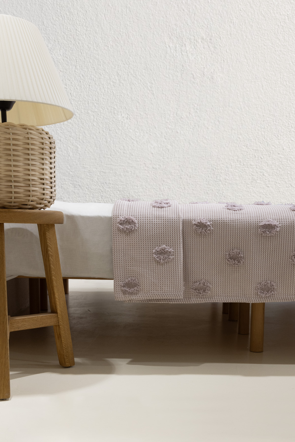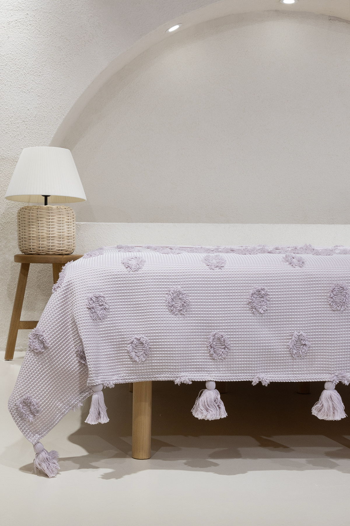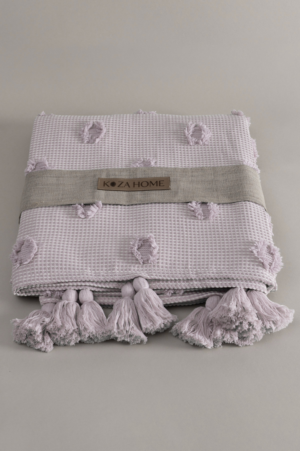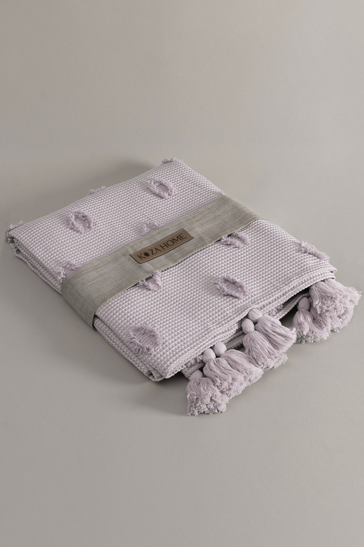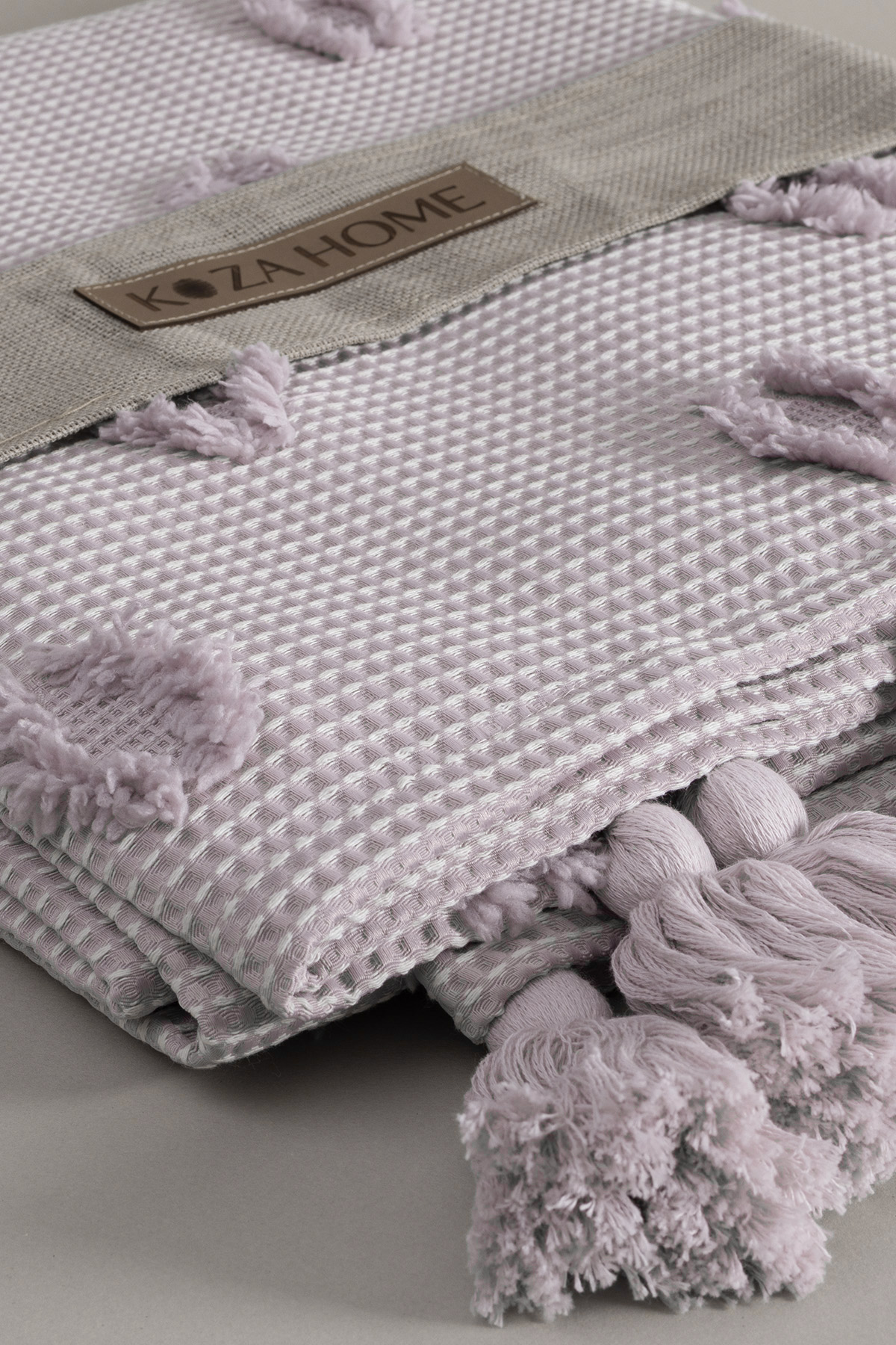 Wanda Lilac Double Edge Tasseled Blanket 220x240 5025 This carefully crafted blanket provides a wide coverage area with a generous size of 220x240 cm. It adds calmness and elegance to your room with its elegant gray, cream and lilac color options. It offers a soft and comfortable feel thanks to its high-quality cotton content. This blanket combines both comfort and aesthetics, effortlessly transforming your bedroom into a haven of peace. Ideal for those looking for a tidy and stylish bedroom, this blanket provides a flashy and harmonious look thanks to its wide coverage area and is suitable for use as a bedspread. The circular tassel details on it reflect an original boho style, adding a unique atmosphere to your room. Wanda Double Edge Tasseled Blanket is a perfect way to organize your bedroom and add a stylish touch. Care Recommendation Washing at 30 degrees is recommended. No bleaching. No ironing required. Dry drying is recommended. No dry cleaning is recommended. Note: Actual colors may vary depending on lighting and monitor settings.