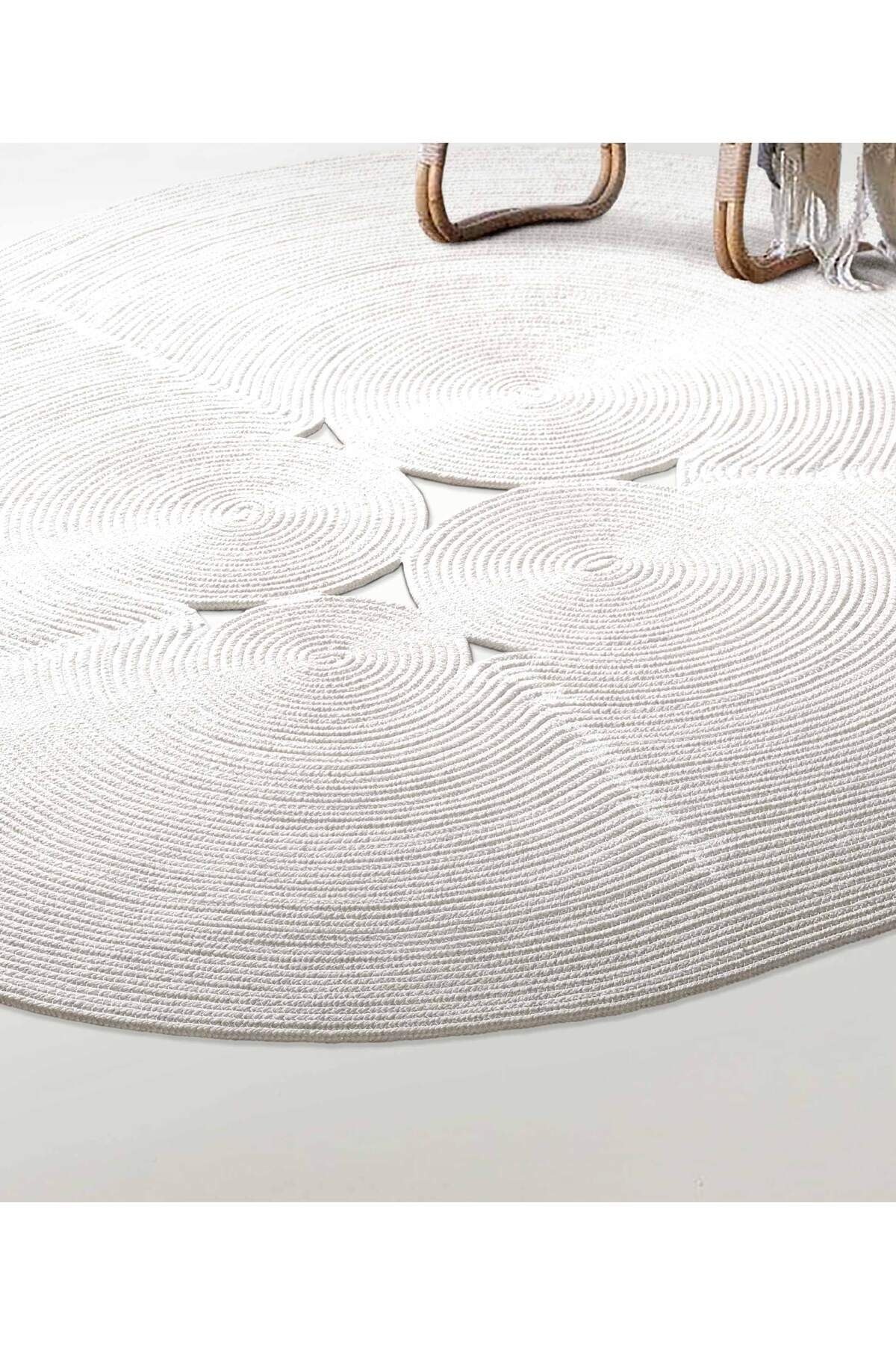 Koza Rug Boulder Hand Knitted Ellipse White Cotton Washable Rug Balcony Terrace Living Room Corridor Rug Wicker Rug 69595 200 x 290