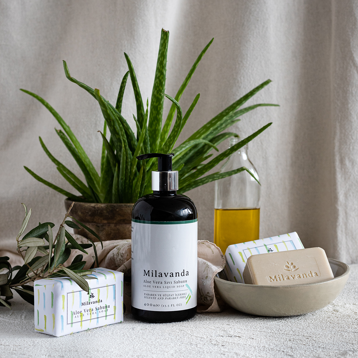 ALOE VERA SOAP SET: Milavanda aloe vera liquid hand soap and bar soap is made for a fresh and spa-like experience with original aloe vera extract. The scent is also fantastically fresh and has a very clean smelling to make you feel regenerated