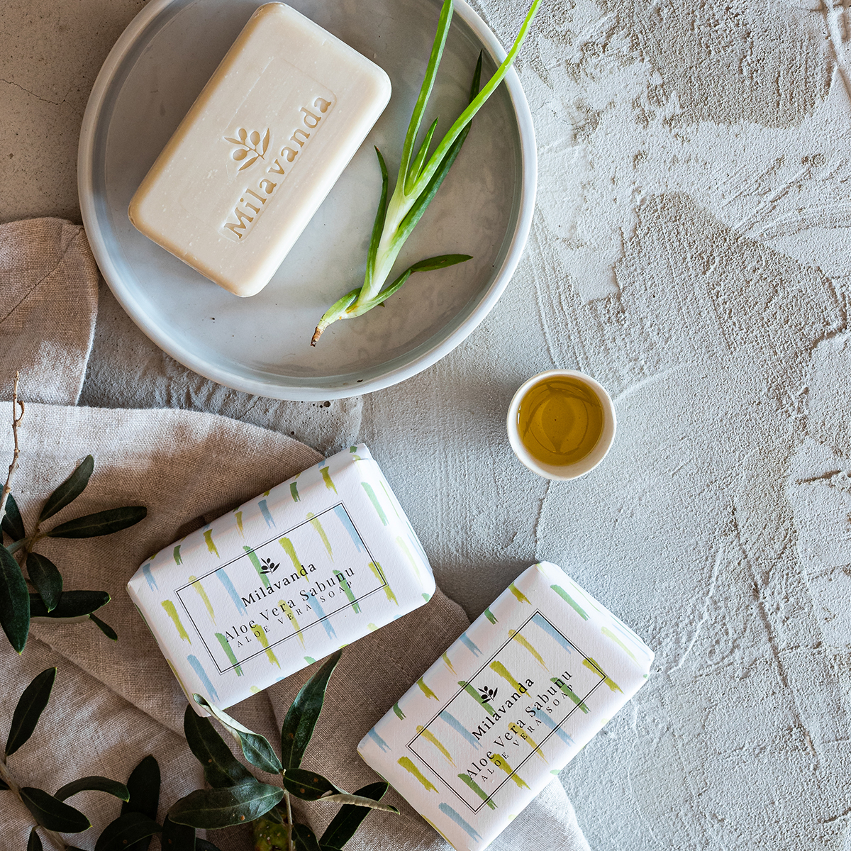 HANDMADE BAR SOAP: Milavanda aloe vera natural hand soap is enriched with extra virgin early harvest cold pressed olive oil. This silky and moisturizing hand soap is a real gentle treat for those with sensitive skin