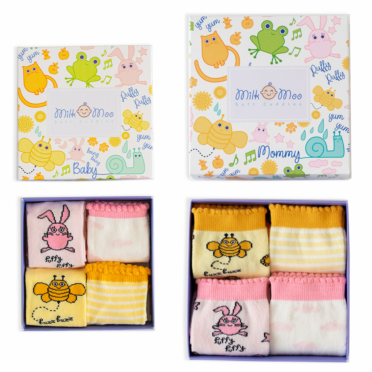 Milk and Moo 4-pair baby socks and 4-pair mom socks set is designed and made in Turkey.