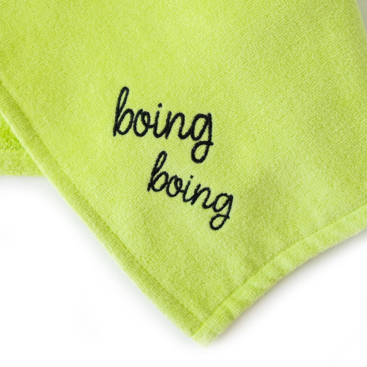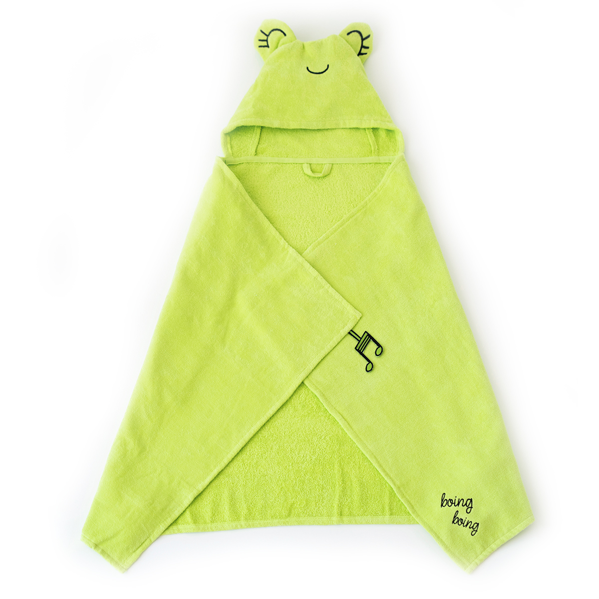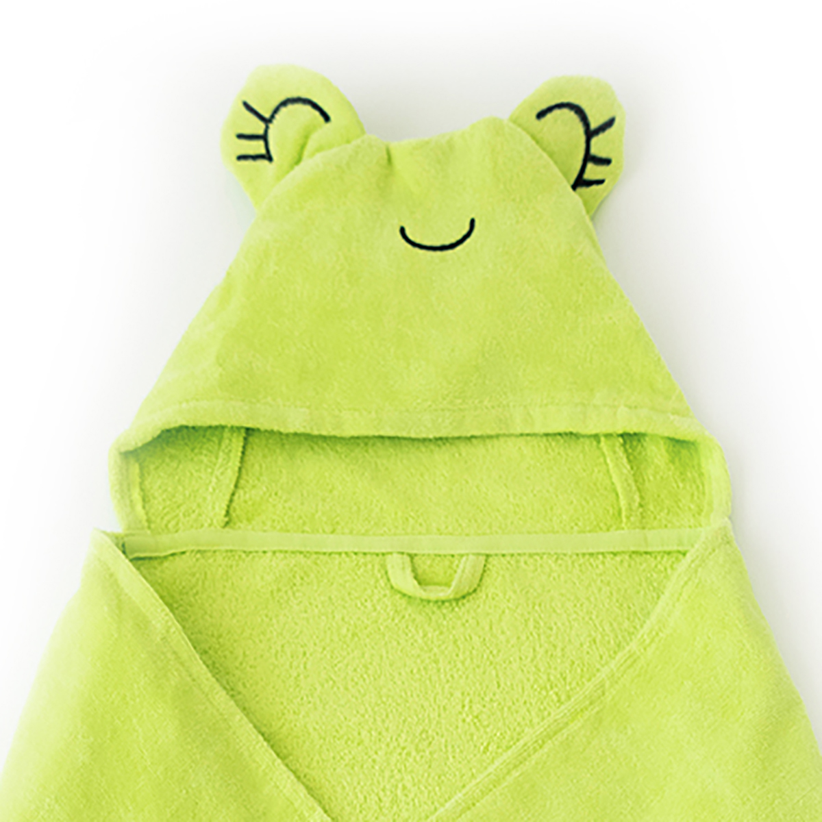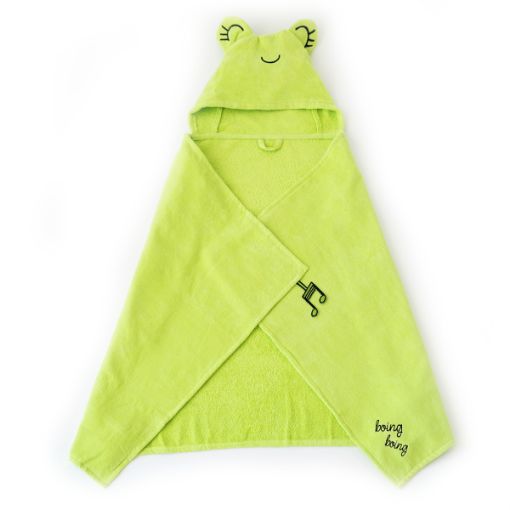 FUN DESIGN HOODED TOWEL: This baby bath towel is designed with an adorable animal Cacha Frog on it. It has stand up ears and cute embroidery detailings on the design. Available in Tombish Cat (orange), Buzzy Bee (yellow), Chancin (pink), Sangaloz (blue) styles.