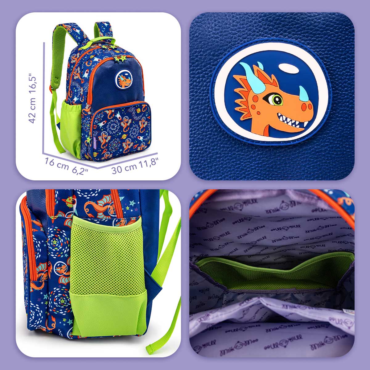 Children's Backpack Dimensions: 30 cm width x 42 cm height x 16 cm depth