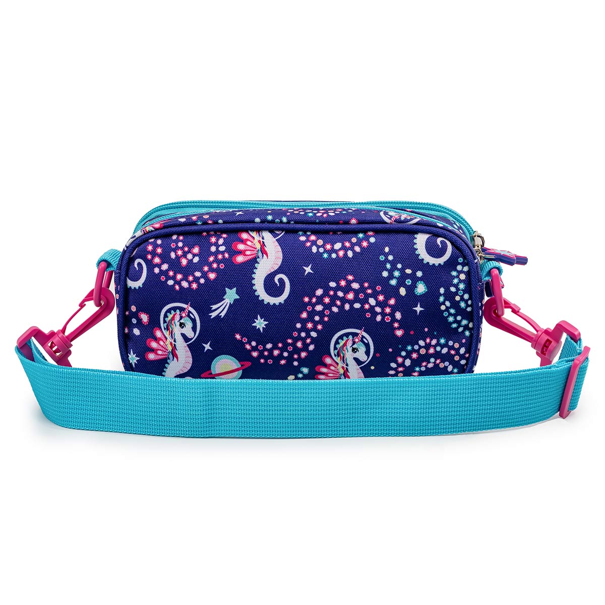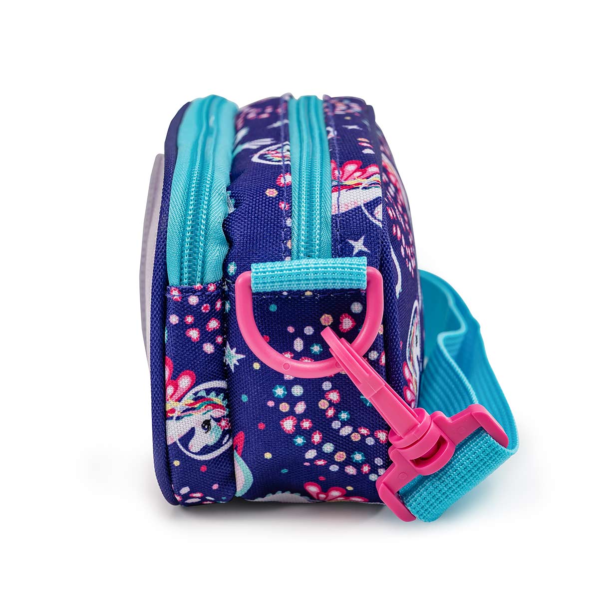 Carry: With the adjustable waist strap, children can carry the bag however they like. Its lightweight design makes it easy to use. Spacious Interior: Two different interior compartments provide enough space to neatly store pens, erasers, sharpeners, and other school supplies.