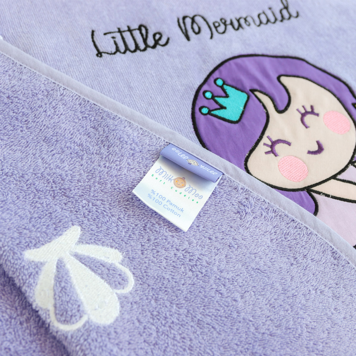 Ultra-soft and absorbent velvet fabric of the Milk&Moo Little Mermaid Poncho will make your child feel comfortable after bath time or after swimming. The high-quality fabric and fun embroidery make it perfect to use as a bath towel, pool towel or beach towel. The hooded beach towel helps your child to dry quickly. The open sides of the poncho allow kids to change their clothes easily. The one-size design gives the kids beach towel a wide size range and allows use for a long time.