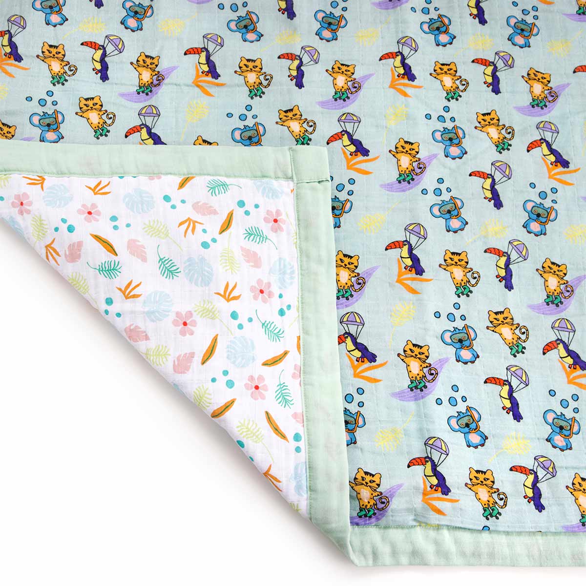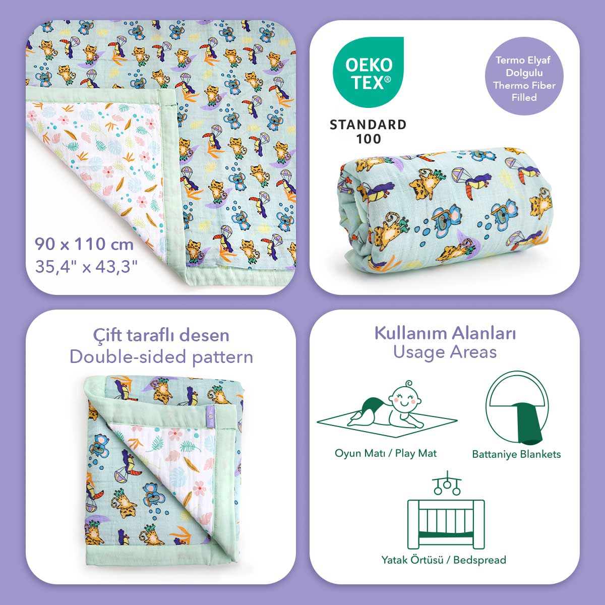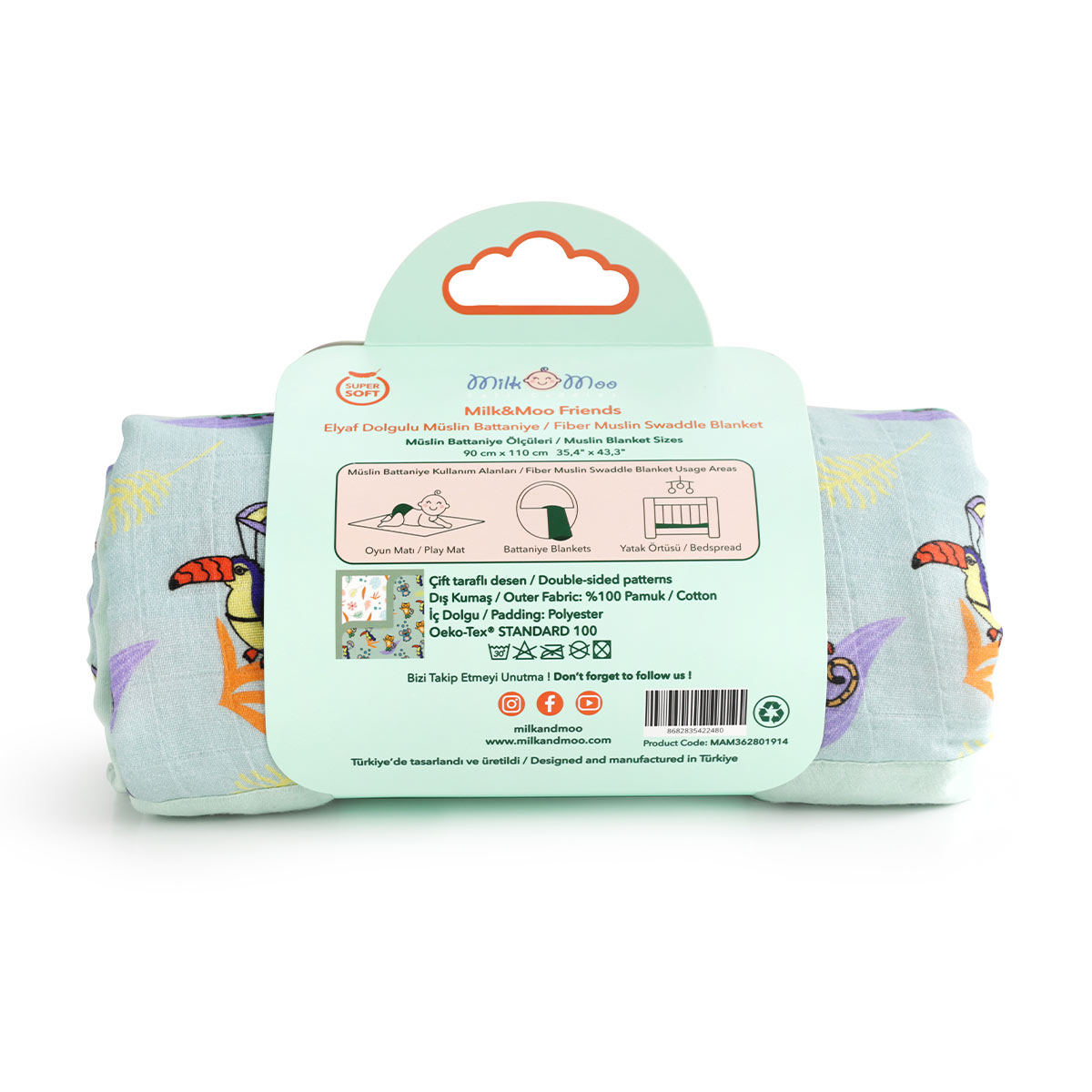 The Milk&Moo Jungle Friends Baby Muslin Swaddle Blanket is made from 100% Oeko-Tex certified Turkish cotton, ensuring a safe and gentle experience for your baby’s delicate skin. This ultra-soft, 4-layer muslin blanket is designed to provide breathable warmth without overheating, making it perfect for swaddling, nursing, or using as a stroller cover. The lightweight fabric ensures comfort while maintaining durability, even after multiple washes. With its adorable Jungle Friends design, it adds a playful touch to your baby girl’s nursery. Generously sized, versatile, and machine washable, it’s an essential baby accessory that combines style, comfort, and practicality. Made in Turkey.