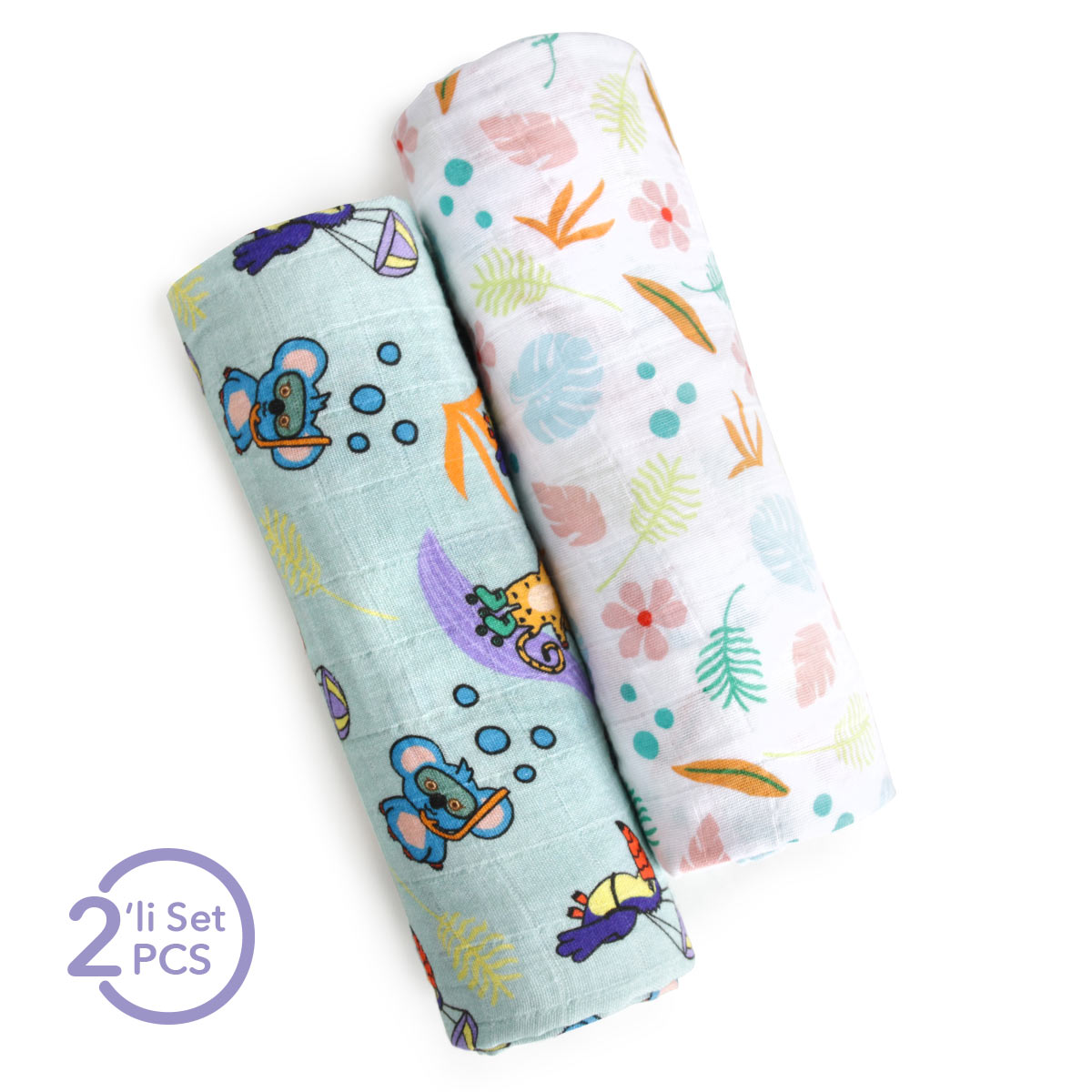 This set includes two ultra-soft and breathable muslin blankets, each featuring a lightweight, four-layer cotton construction. These layers provide warmth for your baby without causing overheating, ensuring they stay cozy and comfortable at the perfect temperature. With generous dimensions of 35x43 inches (90x110 cm), these blankets are ideal for swaddling preemies, newborns, and smaller babies, without adding unnecessary bulk. They can also be used as a toddler blanket, making them a versatile option that grows with your child.