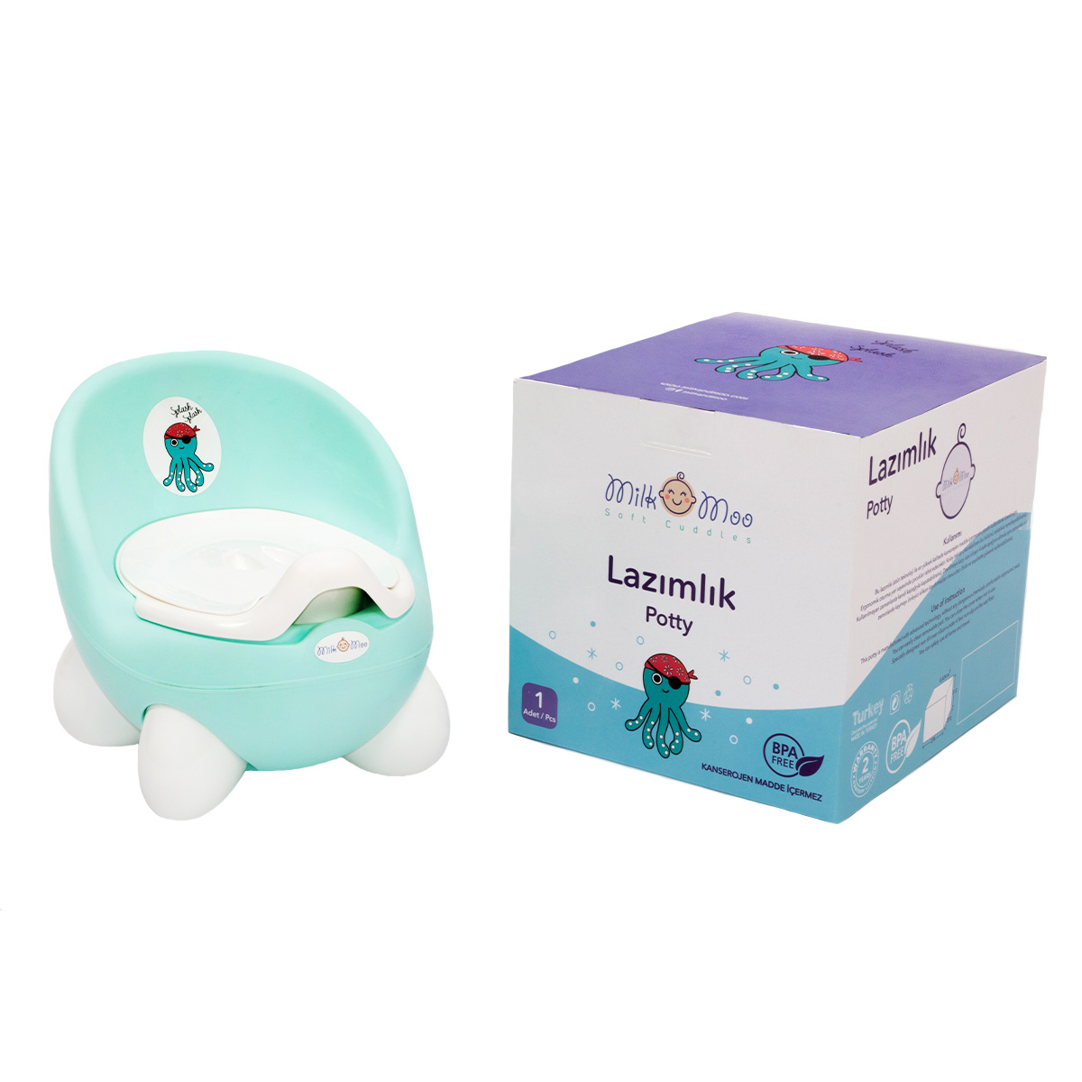 MILK&MOO POTTY CHAIR: Milk&Moo potty chair is made of good quality BPA free plastic. Its seat-like design with correct size, smooth edges, back support and side armrests give optimum support for your child to sit down and stand up properly. We considered ease of use, cleaning features and overall design to help make potty training toilet easier. It is also very cute for both boys and girls. Weight: 2.6 lb, 1180 gr Dimensions: 11x11x12 in, 28x28x32 cm. SAFE TO USE: Milk&Moo materials always give the most intimate care to your child’s health. This plastic baby potty is made from BPA Free materials and other harmful substances to promise safe use. EASY TO CLEAN POTTY SEAT: Thanks to its convenient inner potty, this potty chair is super easy to clean. The whole product is made of plastic, so wiping it down and disinfecting is simple. Simply lift out the inner potty, empty it, and wipe clean or rinse with water. Parents also note that the shape of the built-in splash guard is also very effective for both girls and boys to prevent spills and making it cleaner to use. The additional covering lid for the potty makes it look neat in your bathroom. NON SLIP DESIGN: Milk&Moo toddler potty has non-slip material along the bottom rim to make sure it won't slide around the floor and will stay firmly in place for security so that your baby doesn’t slip or get hurt. PORTABLE POTTY TRAINING: This potty chair gives you the flexibility of potty training from anywhere in the house and even moving from room to room. You can keep it handy for your child to use, both at home and on trips. Its compact size also makes it suitable for even smaller bathrooms.