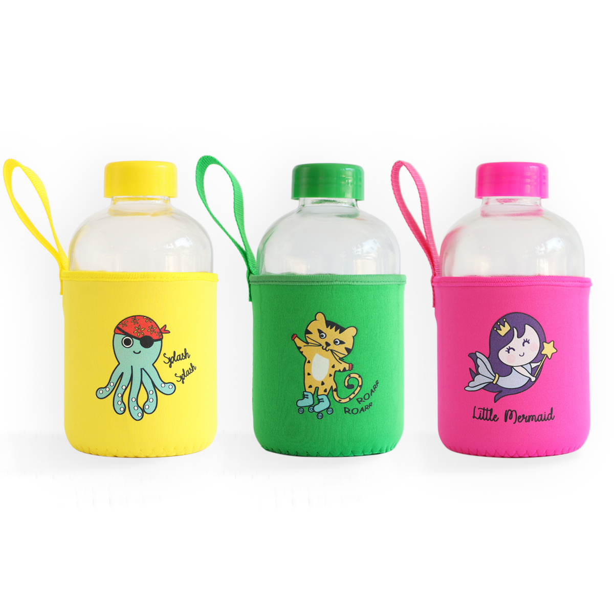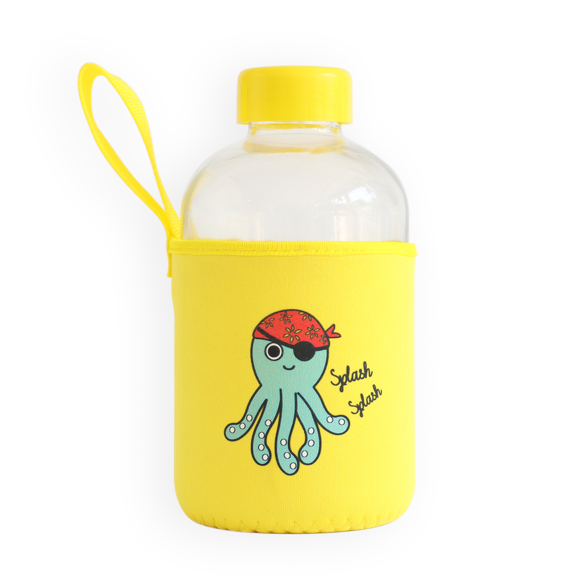 With its glass bottle and Sailor Octopus figure printed cover, this flask is both hygienic and entertaining! It's the Milk&Moo family's jerry bottle, with a large volume of 600 milliliters and a chubby structure! Our kids’ flask will motivate your child to drink more water with its fun mermaid print and vibrant pink color. It can be used at the beach, at school, at a picnic, or anywhere you can imagine. It can also be used as a bedside water jug. The handle provides an easy grip for our young ones.