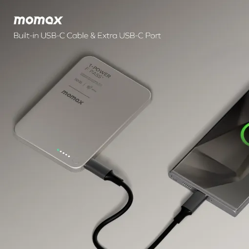 اجمع بين الأسلوب والأداء مع بطارية Momax 1-Power F.Pass+ بلون التيتانيوم، التي تتميز بتصميم نحيف وخفيف الوزن يسهل حمله في الجيب أو الحقيبة. بسعة 5000 مللي أمبير/ساعة، تعد مثالية للشحن السريع أثناء التنقل.