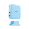 The MOMAX ONE PLUG PD 70W GaN 4-Port Desktop Charger in Blue is an efficient, stylish charging solution for homes or offices. With 2 USB-C and 2 USB-A charging ports, this charger allows you to simultaneously charge up to 4 devices at maximum power output of 70W. It supports popular fast charging standards like PD, QC, PPS, and UFCS, ensuring quick and safe charging for a wide variety of devices. Its modern design and vertical placement feature help reduce clutter, while the fire-resistant materials ensure durability and safety.