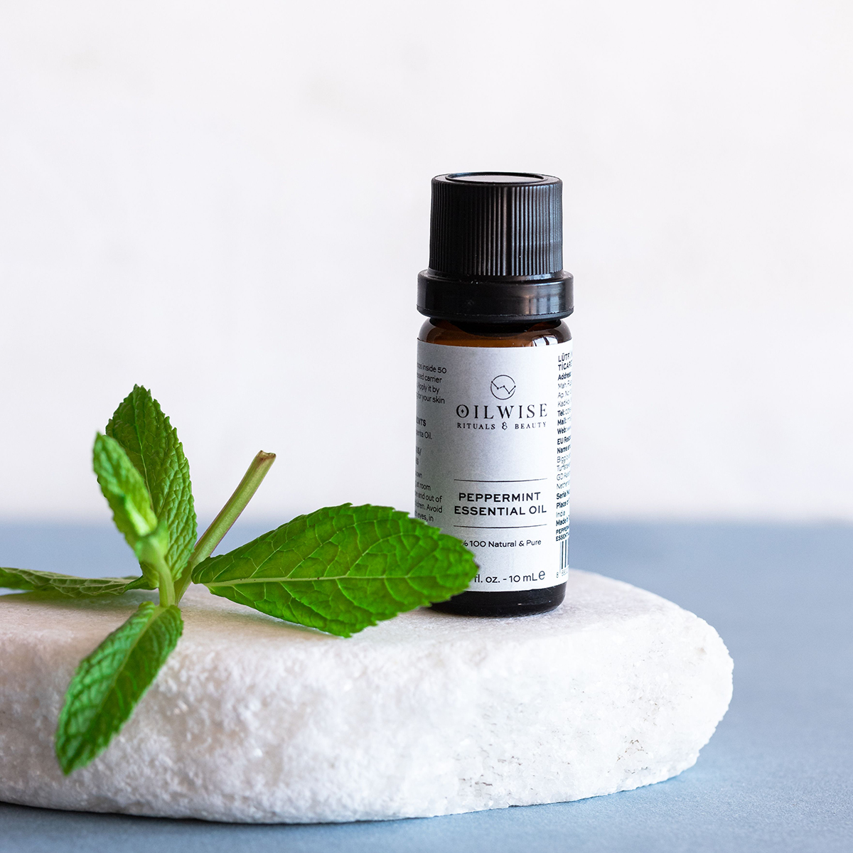 Oilwise Peppermint Essential Oil evokes freshness and refreshment with its unique fragrance. This pure peppermint oil also has many properties. It calms acne and skin inflammation and gives a cooling effect to the skin. Ideal for use as a massage oil and shower oil.