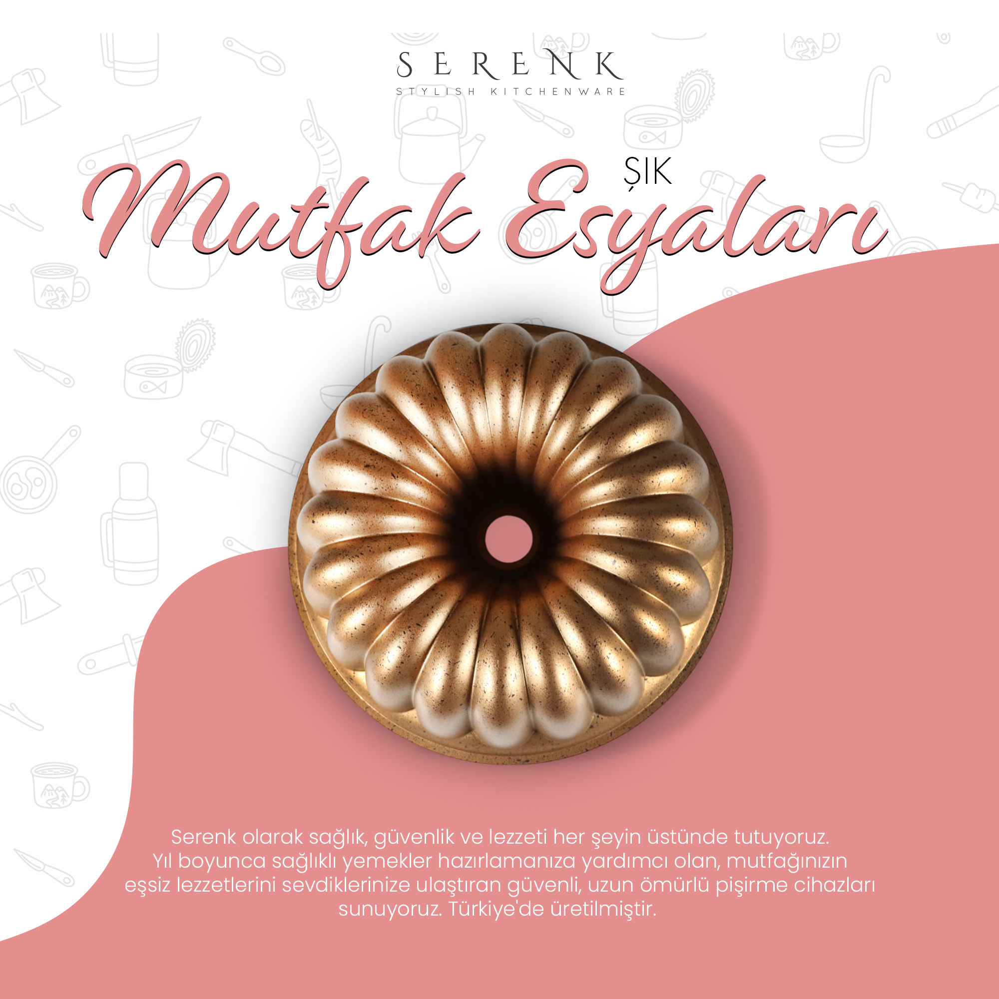 The Arya cake mold from Serenk’s Fun Cooking series features a high-quality non-stick granite coating on both the interior and exterior. With its eye-catching color and premium surface, this mold is a timeless classic for baking enthusiasts.