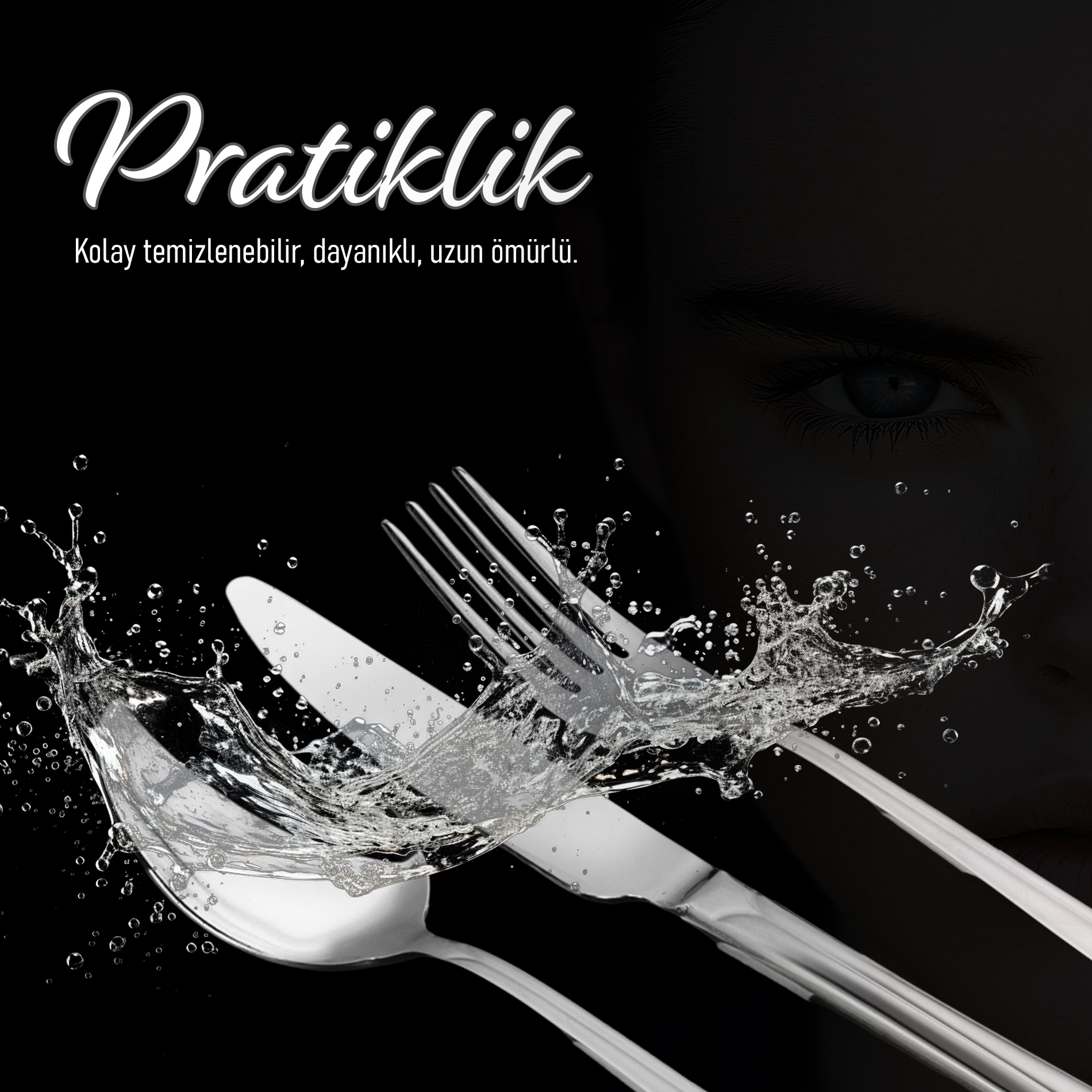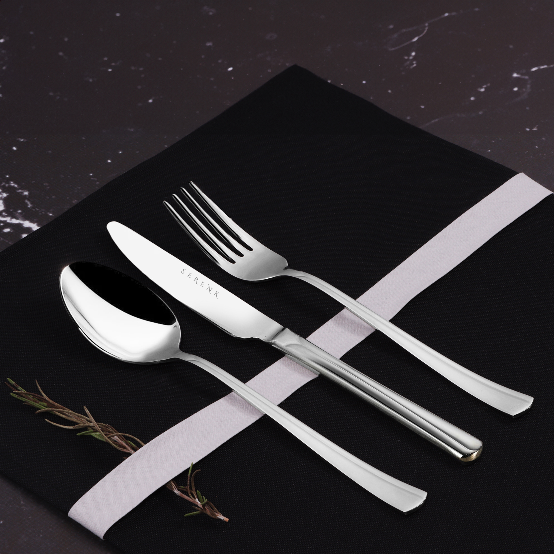 This versatile set includes six forks, knives, and spoons, providing everything you need for a full dining experience. Designed with comfort and precision in mind, the ergonomic forks and sharp knives offer effortless use, whether for casual meals or formal gatherings. The well-balanced spoons complete the set, ensuring it adapts to any dining occasion.