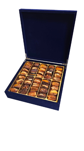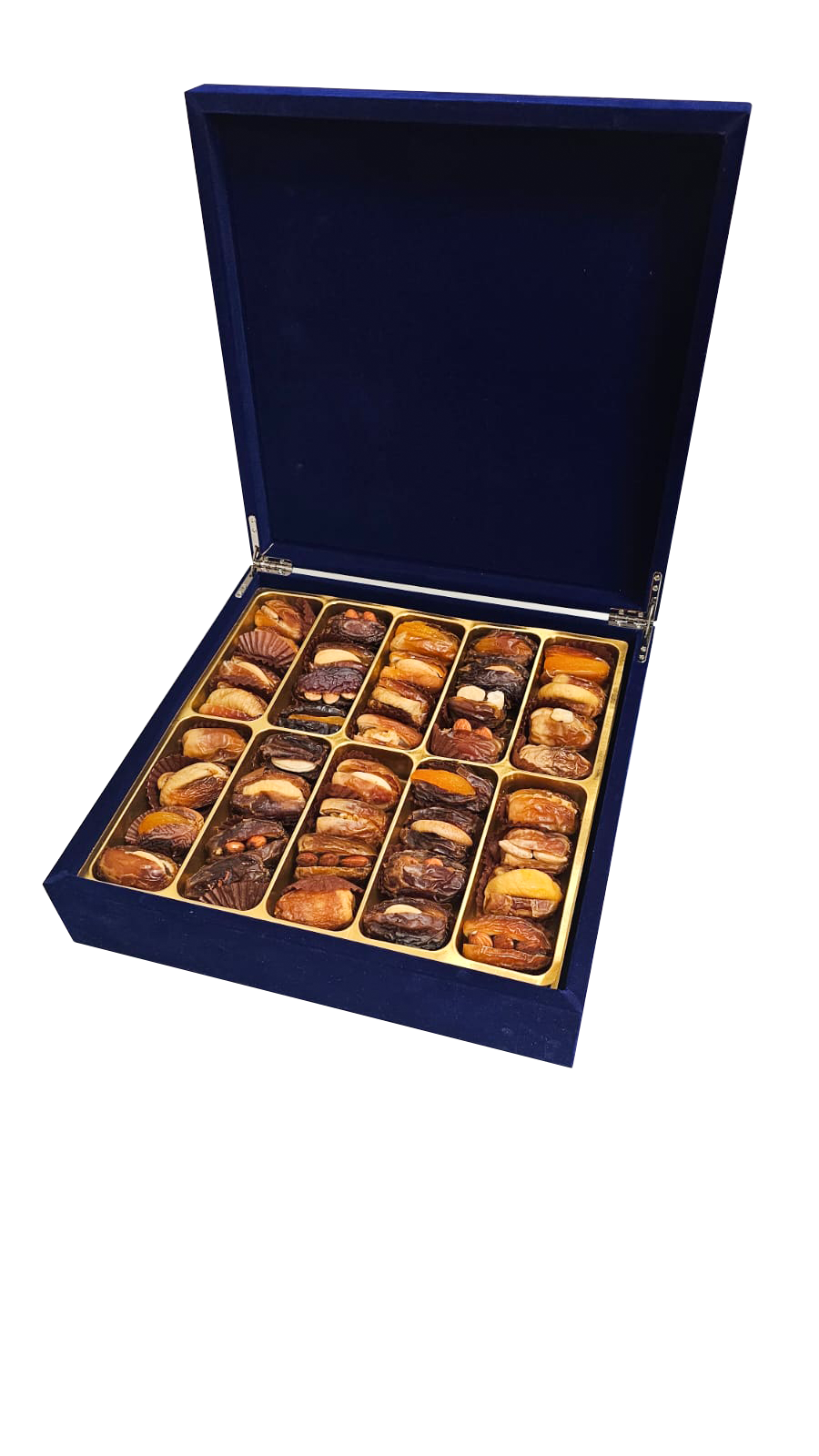 Indulge in the ultimate luxury with our Velvet Luxury Box filled with the finest premium stuffed dates. This elegantly crafted box is designed to offer an exquisite selection of handpicked, soft and juicy dates, generously stuffed with a variety of premium fillings such as almonds, pistachios, walnuts, and more. Encased in a beautiful velvet box, this premium collection makes for a perfect gift for special occasions, Ramadan, Eid, and corporate gifting. Each date is carefully selected for freshness and quality, ensuring a delightful taste and a healthy, energy-packed treat. Whether for personal indulgence or gifting, our stuffed premium dates promise a rich, nutritious, and luxurious experience.