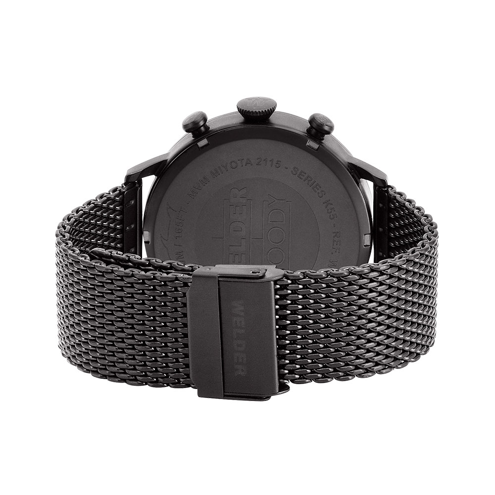 Welder Moody Watch WWRC1007 47 mm Men's Wristwatch Product Details Your "Breezy Collection" Welder Moody watch, which has a dazzling appearance with its mesh metal strap, is an ideal choice for those who follow the trends closely with its winding crown on the left side and its "Photochromic" glass that changes color according to the light! Features: Case Diameter: 47 mm Case Shape: Round Case Stone: No Glass Feature: Mineral Photochromic Style: Sports Watches Case Color: Black Dial Color: Blue Dial Stone: No Strap Type: Mesh Color: Smoke Water Resistance: 5 ATM Stopwatch: No Calendar: Yes Alarm: No