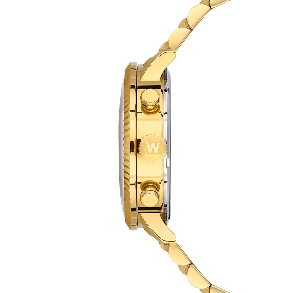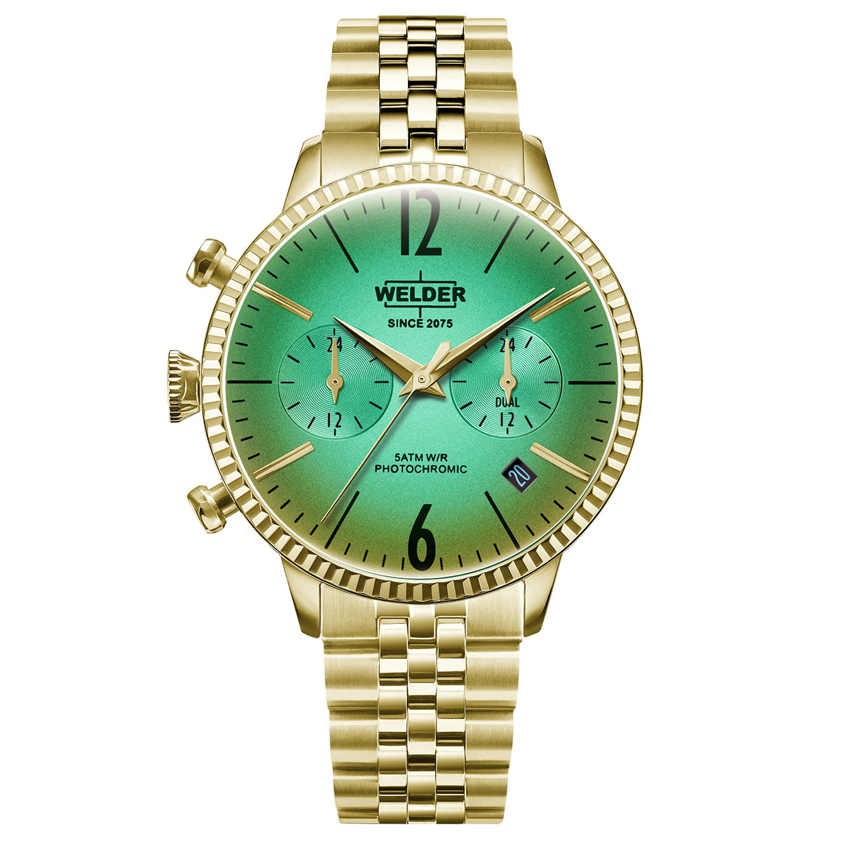 Welder Moody Watch WWRC654 Women's Wristwatch: Timeless Elegance Meets Modern Functionality Combining classic and modern designs, the Welder Moody Watch WWRC654 Women's Wristwatch offers elegance that appeals to every style and taste. This watch, which has a 2-year warranty, looks perfect on your wrist with its gold-colored steel case, 39 mm case diameter and 13 mm case thickness. Thanks to its Mineral Photochromic glass, this watch automatically colors in sunlight and provides an eye-catching look in any environment. The design, completed with a steel strap and gold-tone buckle, adapts to both classic and modern styles. Features: Case Diameter: 39 mm Case Shape: Round Case Stone: No Glass Feature: Mineral Photochromic Style: Classic Watches Case Color: Gold Color Dial Color: Dial Stone: No Strap Type: Steel Color: Gold Color Water Resistance: 5 ATM Stopwatch: No Calendar: Yes Alarm: No