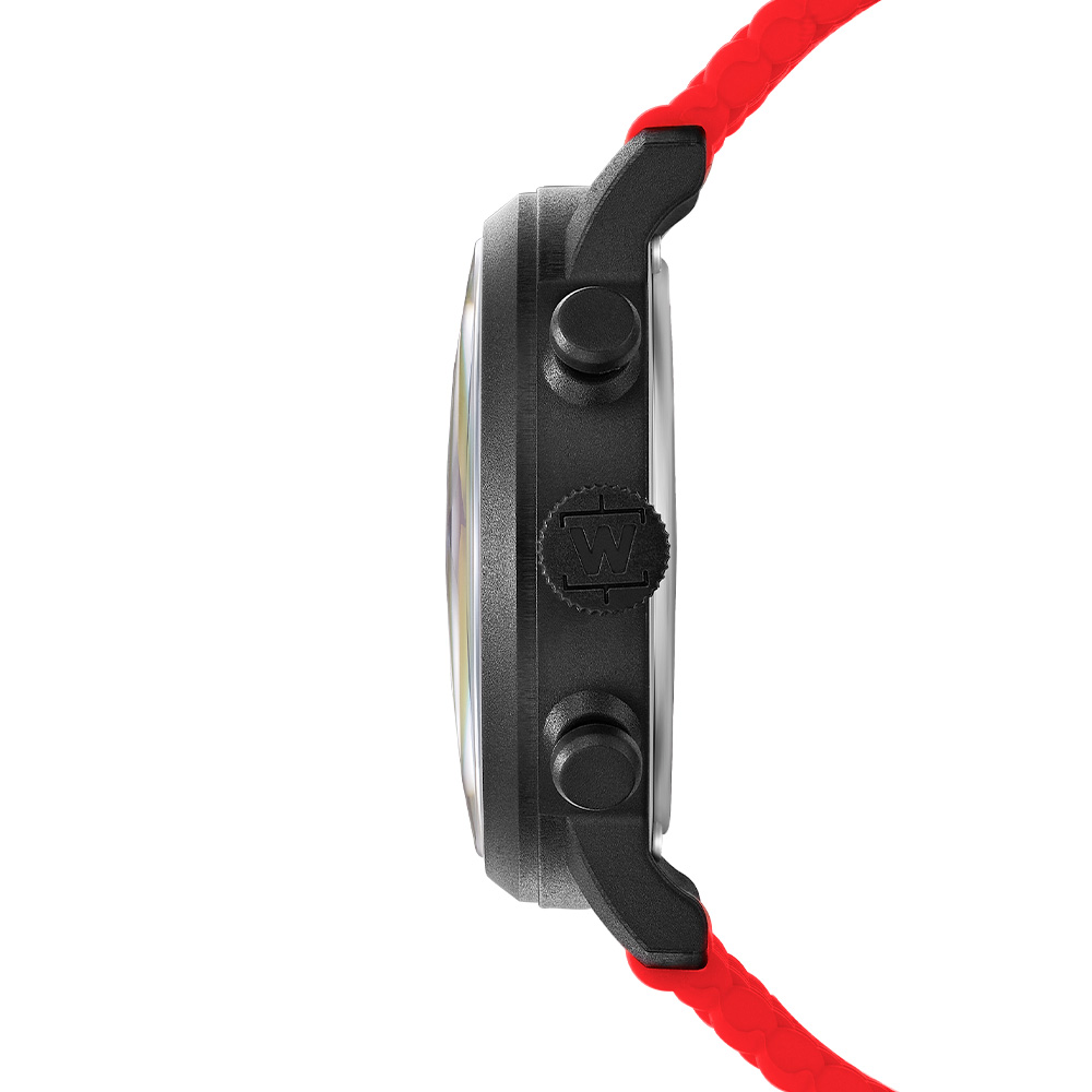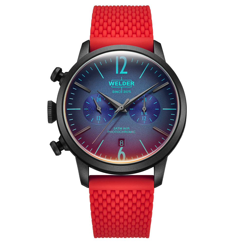 Welder Moody Watch WWRP503 Men's Wristwatch: Experience Strong and Modern StyleWelder Moody Watch WWRP503 is a men's wristwatch model that stands out with its modern and masculine design. One of the most striking pieces of the "Breezy Collection", this watch offers a stylish and eye-catching look in any environment with its "Photochromic" glass that changes color in sunlight. The silicone strap of this watch, which makes it easy to use with the winding crown on the left, offers comfort and durability. It has a perfect stance on your wrist with its 45 mm case diameter. Features: Case Diameter: 45 mmCase Shape: RoundCase Stone: NoGlass Feature: Mineral PhotochromicStyle: Sports WatchesCase Color: BlackDial Color: Dial Stone: NoStrap Type: SiliconeColor: RedWater Resistance: 5 ATMStopwatch: NoCalendar: YesAlarm: No