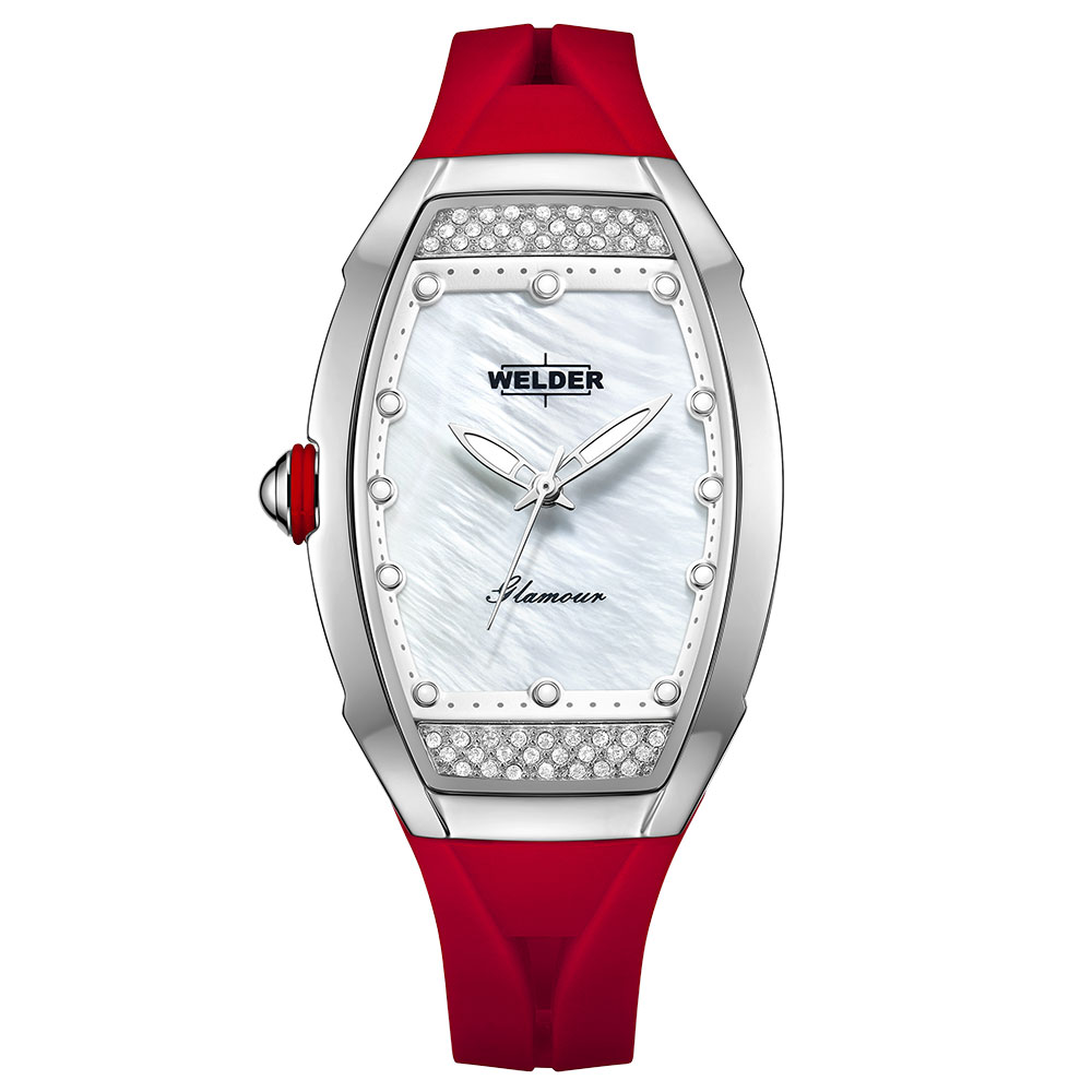 Features: Case Diameter: 29 mmx42 mmCase Shape: Tonneau/BarrelCase Stone: No >Glass Feature: MineralStyle: Classic WatchesCase Color: Metallic GrayDial Color: RedDial Stone: YesStrap Type: SiliconeColor: RedWater Resistance: Chronometer: NoCalendar: NoAlarm: No