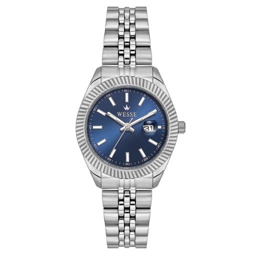 Features: Case Diameter: 32 mmCase Shape: RoundCase Stone: None>Glass Feature: MineralStyle: Classic WatchesCase Color: Metallic GrayDial Color: Metallic GrayDial Stone: NoneStrap Type: SteelColor: Metallic GrayWater Resistance: Chronometer: NoCalendar: YesAlarm: None