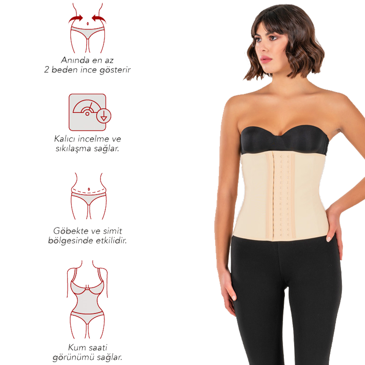 Latex Waist Training Corset contains 9 steel baleens that allow you to stand upright and correct your posture. This corset can be used by anyone and is also suitable for postpartum. With regular use, the corset has an effect on belly, waist and abdomen areas of the body. It also provides permanent slimming and tightening.
